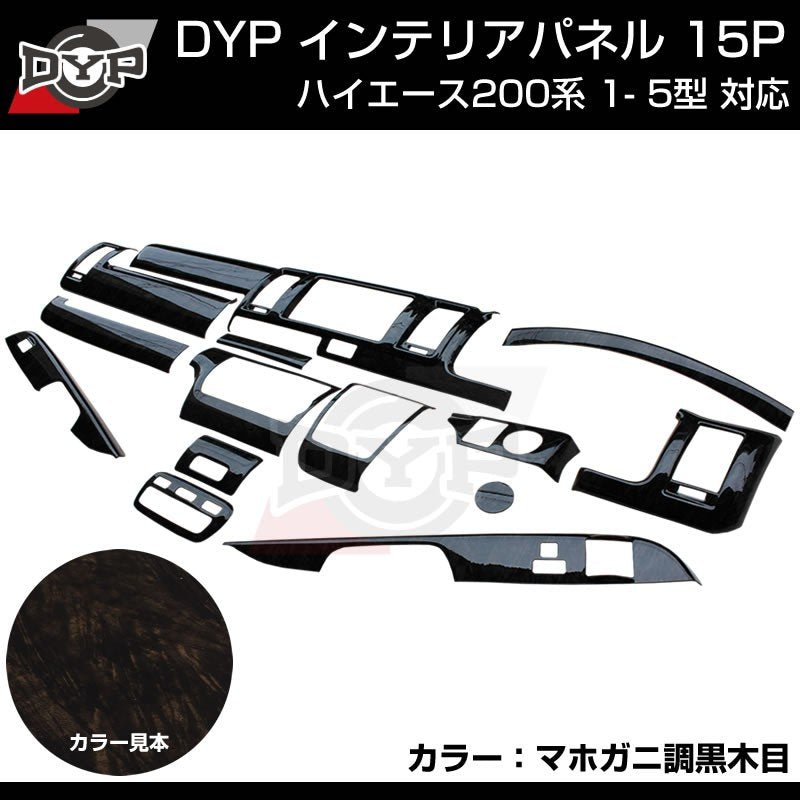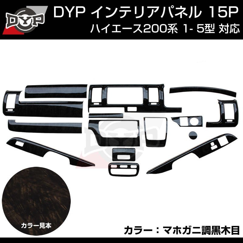 ダークプライム内装近似色【マホガニ調黒木目 】インテリアパネル15P ハイエース200系 4- 7型 対応 DYP