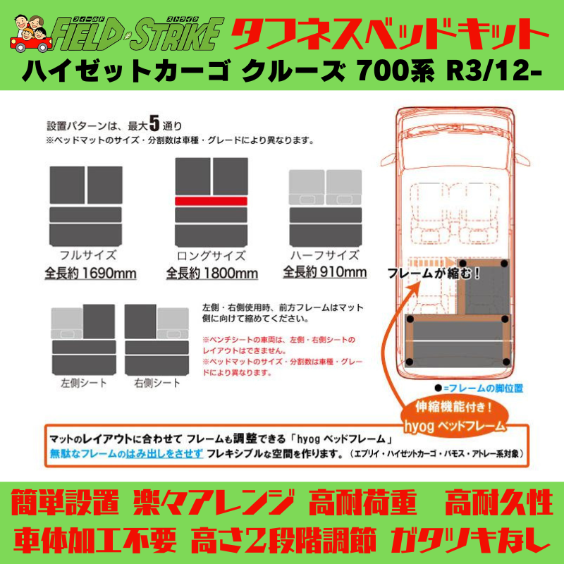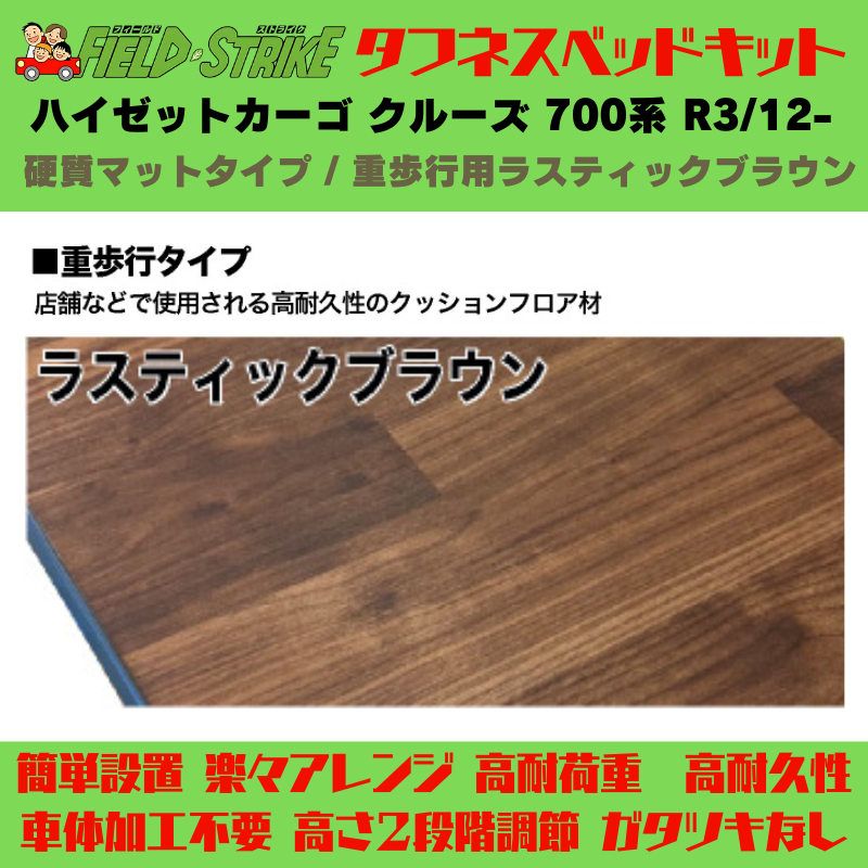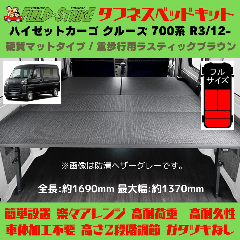 全長169cm (硬質マットタイプ / 重歩行用ラスティックブラウン) フルサイズ ベッドキット ハイゼットカーゴ クルーズ 700系 R3/12- Field Strike