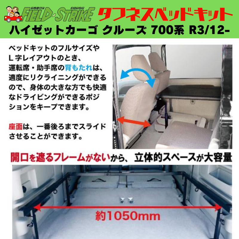 ハイゼットカーゴ 700系 クルーズグレード専用に設計されたフルサイズのベッドキットです。