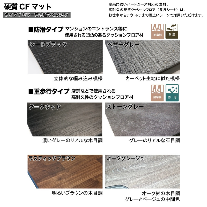硬質タイプや防滑タイプなど6種類のバリエーションを出品中です。
