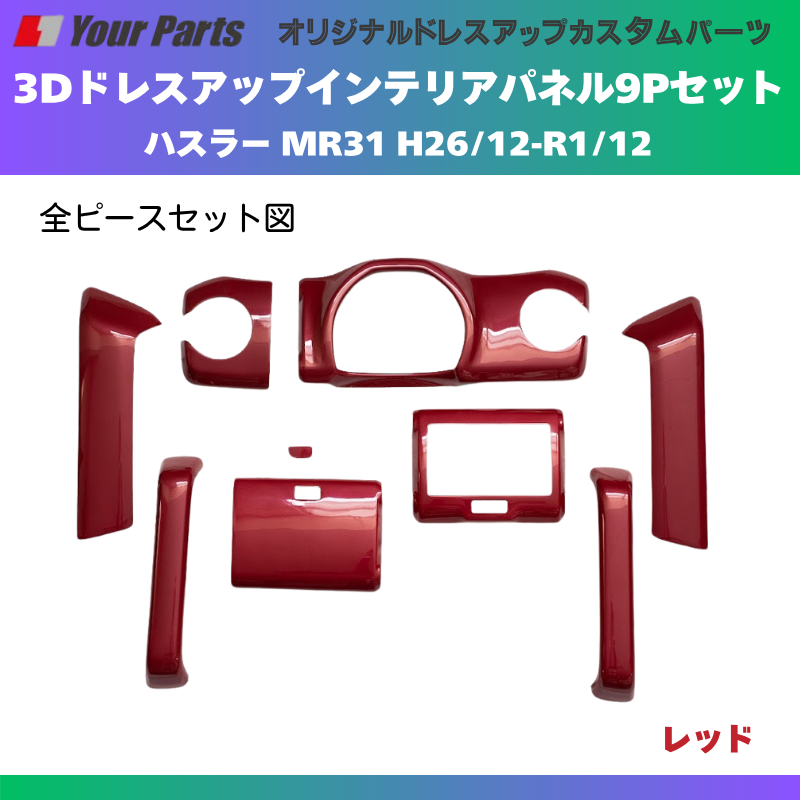 再入荷 (レッド) 3Dドレスアップインテリアパネル 9Pセット ハスラー MR31 H26/12-R1/12 YourParts e0191 車 カスタム パーツ 内装 おしゃれ ドレスアップ