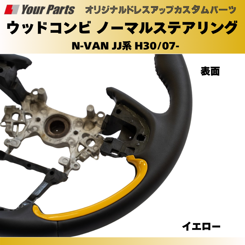 純正交換 ノーマルグリップ (イエロー) ウッドコンビステアリング N-VAN JJ系 H30/07- YourParts e0197 車 カスタム パーツ 内装 おしゃれ ドレスアップ