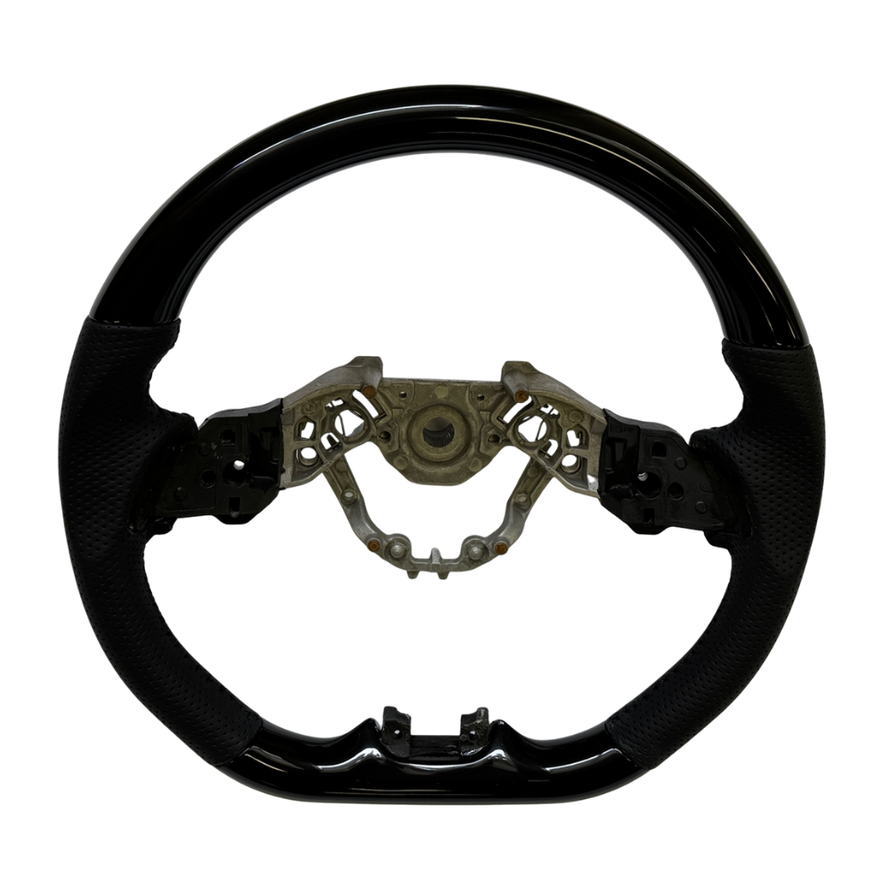 当店限定販売モデルのスタイリッシュなD型デザインのウッドコンビステアリングです。