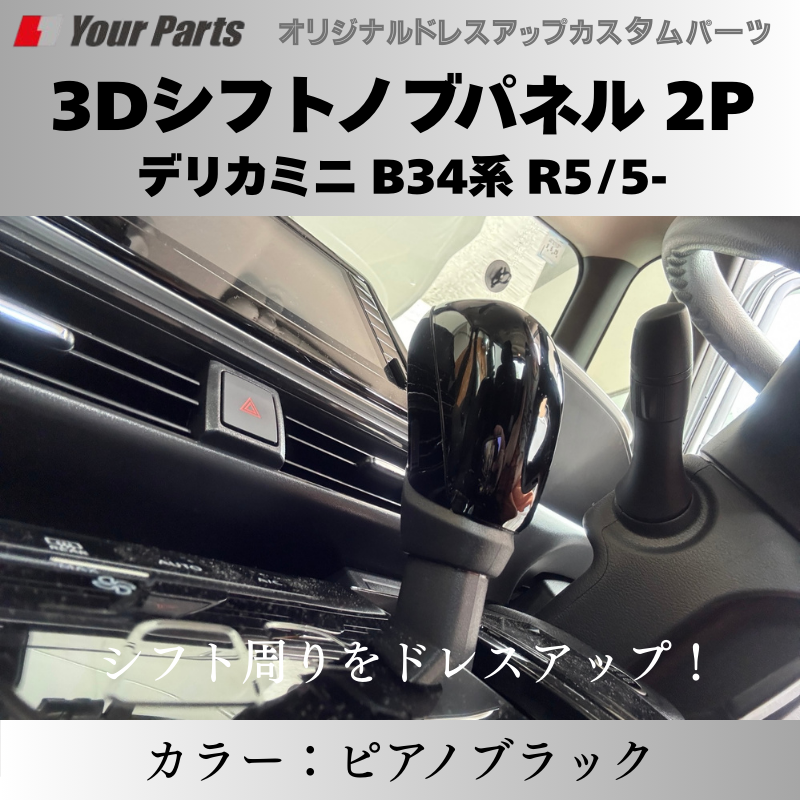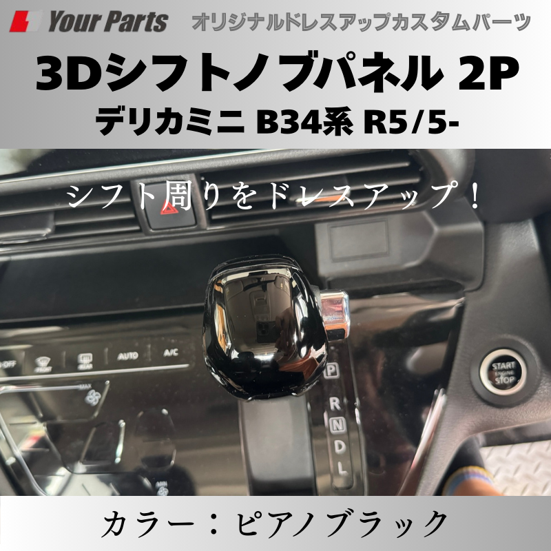 (ピアノブラック) 3Dシフトノブパネル 2P デリカミニ B34系 R5/5-R7/9 YourParts e0216 車 カスタム パーツ 内装 おしゃれ ドレスアップ
