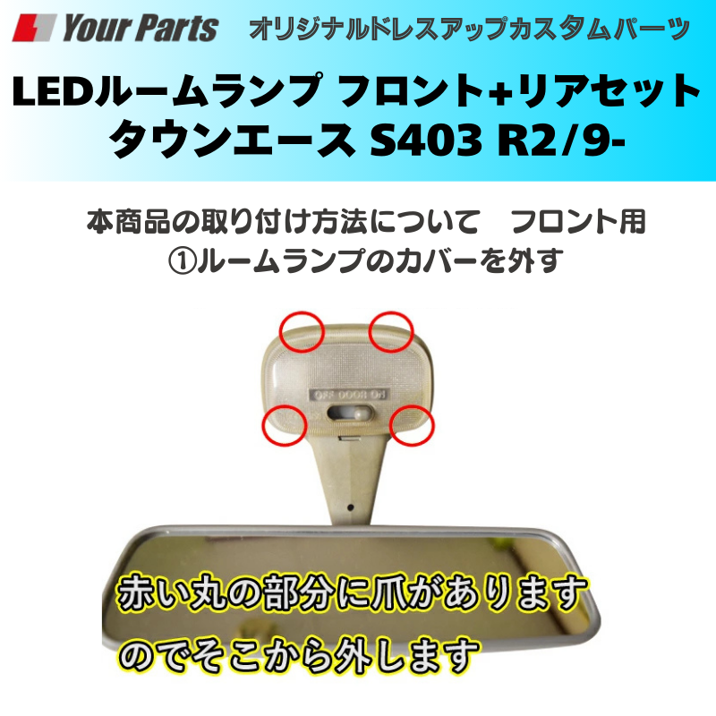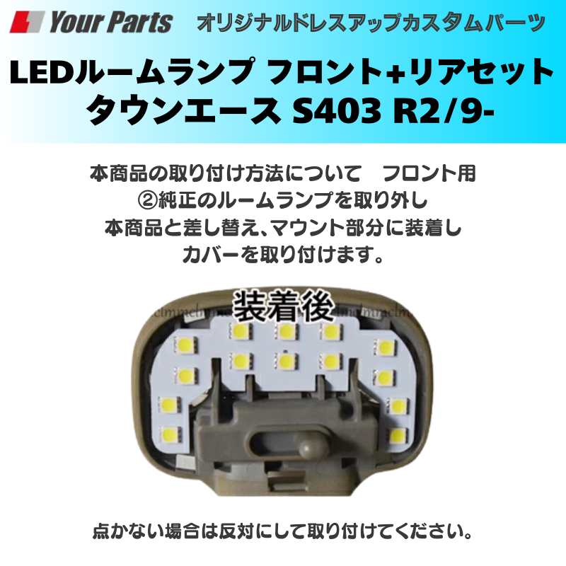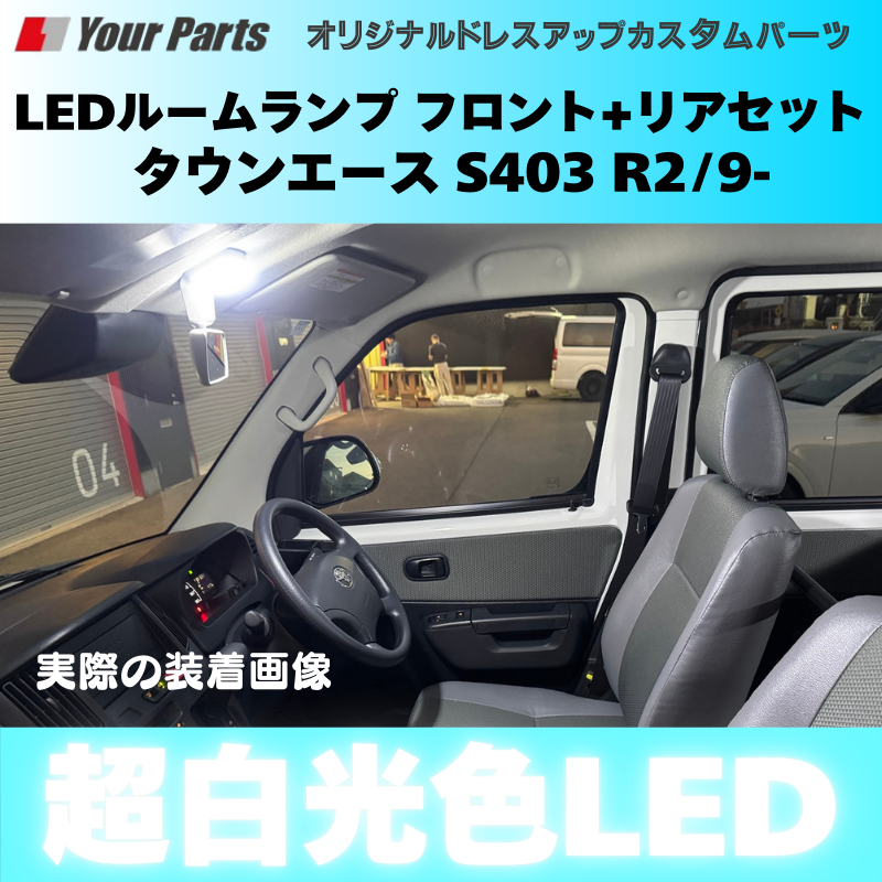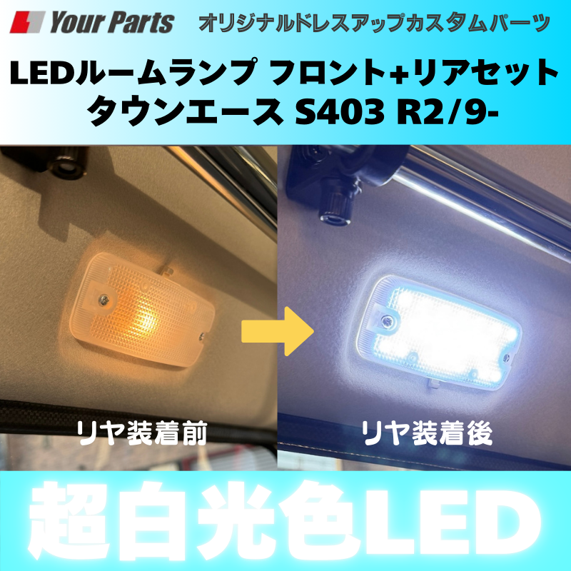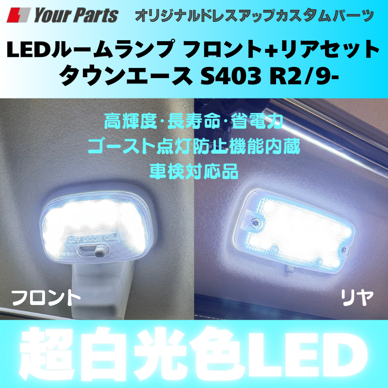 作業の車に最適 (ホワイト光) 超白光色 LEDルームランプ フロント+リヤセット2P タウンエース S403 R2/9- YourParts e0225 省電力 商用車 働く車