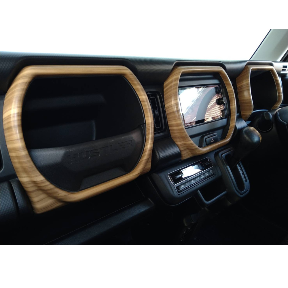 (マット茶木目) オリジナル3D インテリアパネル3P ハスラー MR52 / 92S 現行 R2/1- DYP センターパネル 貼付けタイプ 車 カスタム パーツドレスアップ
