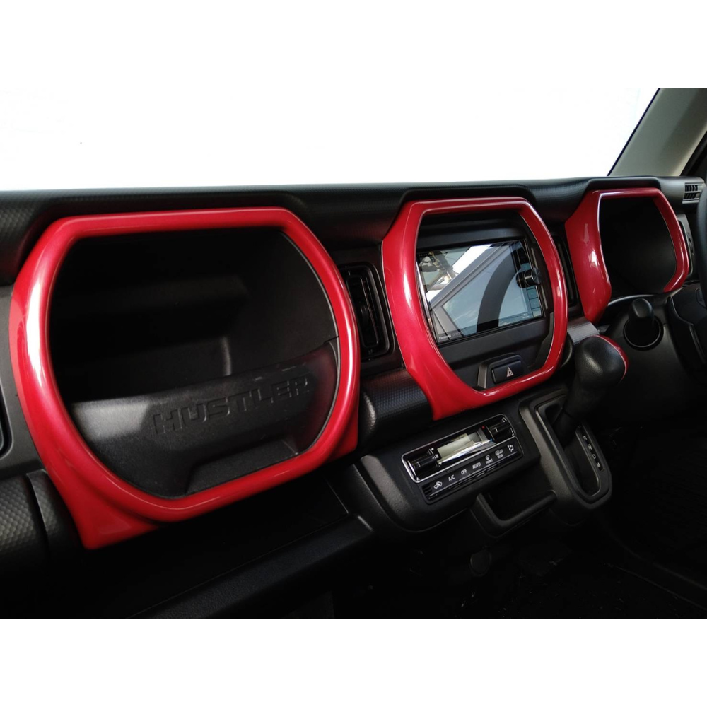 (レッド) オリジナル3D インテリアパネル3P ハスラー MR52 / 92S 現行 R2/1- DYP センターパネル 貼付けタイプ 車 カスタム パーツドレスアップ