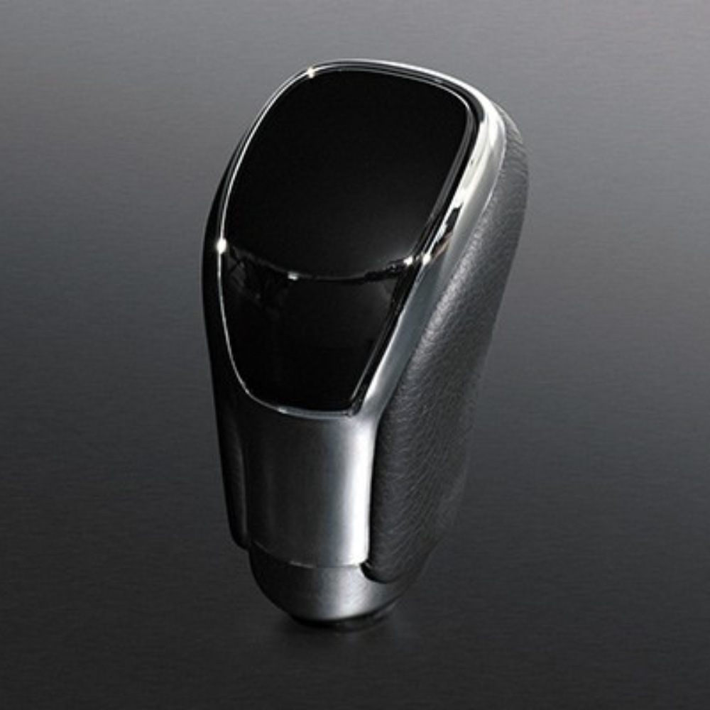 カラードパネルとクロームメッキフレームの融合、そして高級PVCレザーのコンビシフトノブです。