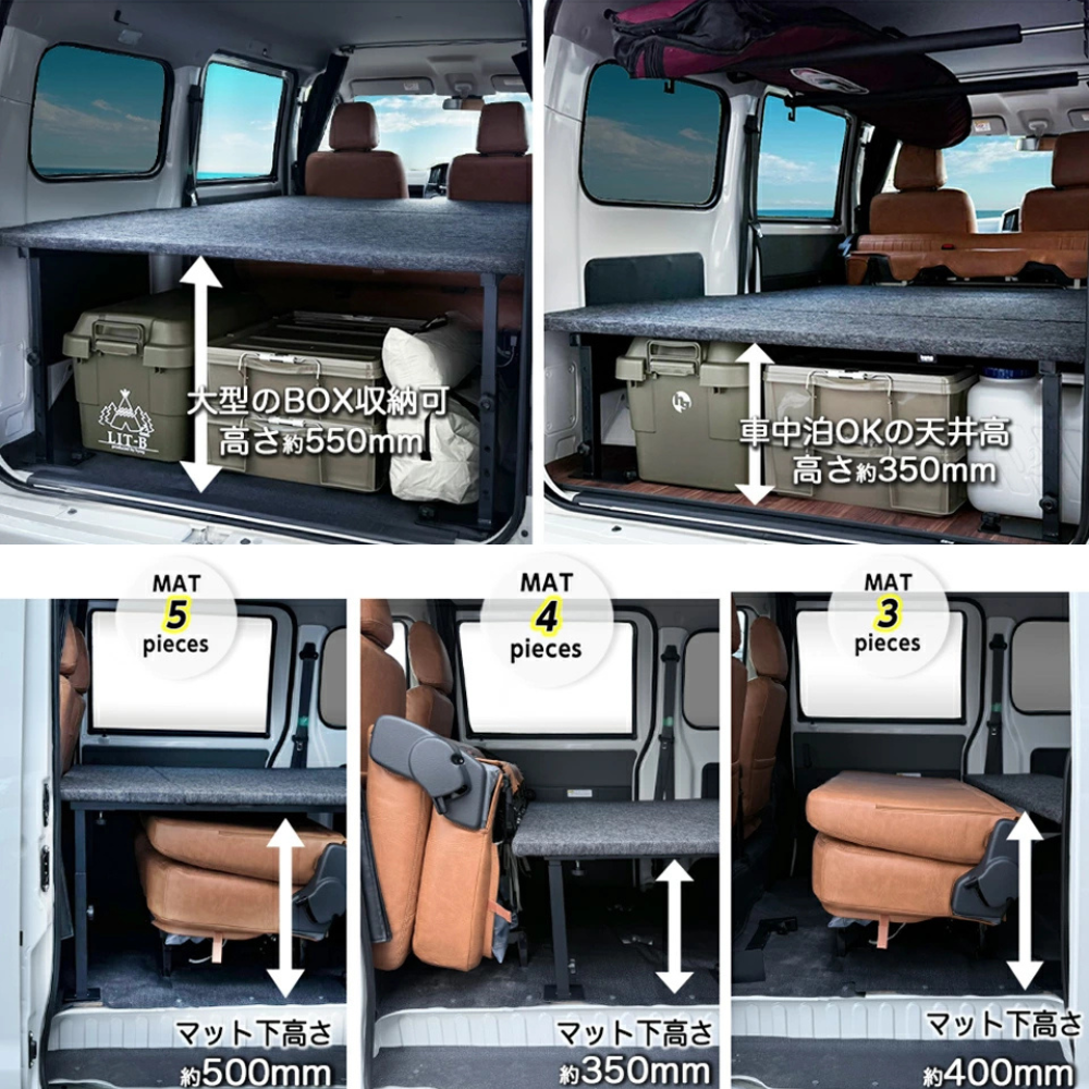 タフ仕様 全長2065mm 高さ5段階 (ブラックレザータイプ) ベッドキット タウンエース バン S403 / S413 R2/9- Field Strike GL / DX
