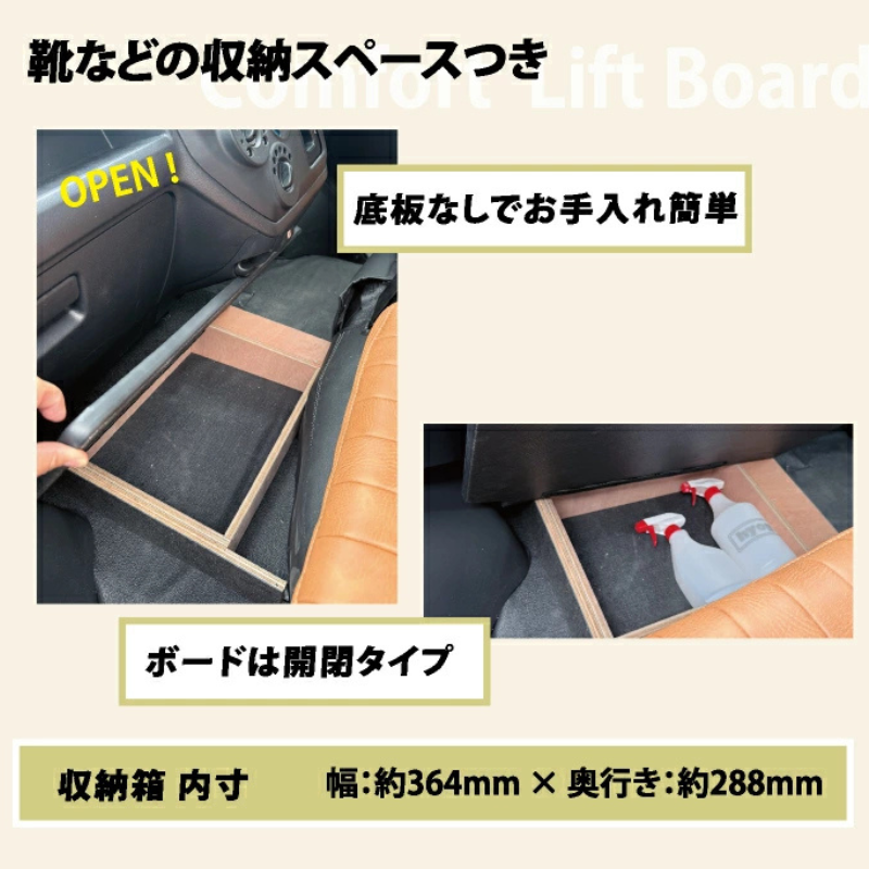 助手席に置くだけで足元が10センチアップ!収納も付いたフロアアップステップ、通称「思いやりステップ」です。