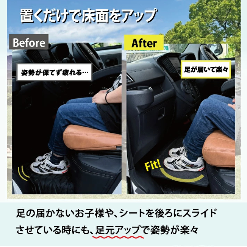 本商品を使用すれば、タウンエースの助手席に女性やお子様が乗る際にも、足がフロアにしっかりとのせる事が出来、安全かつ快適なドライブをサポートできます。