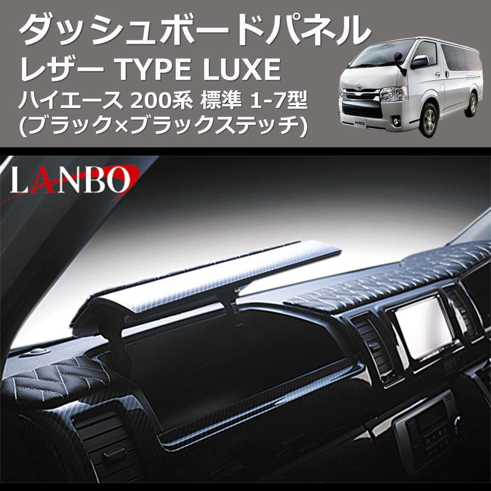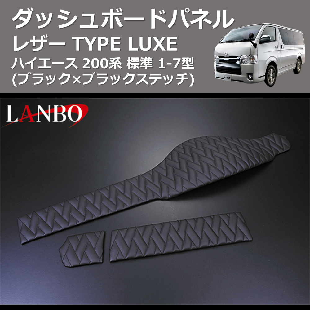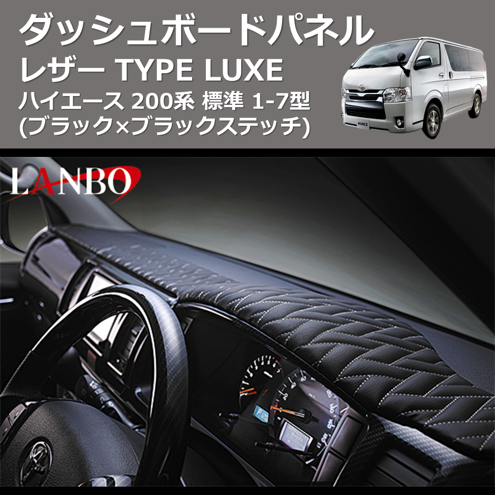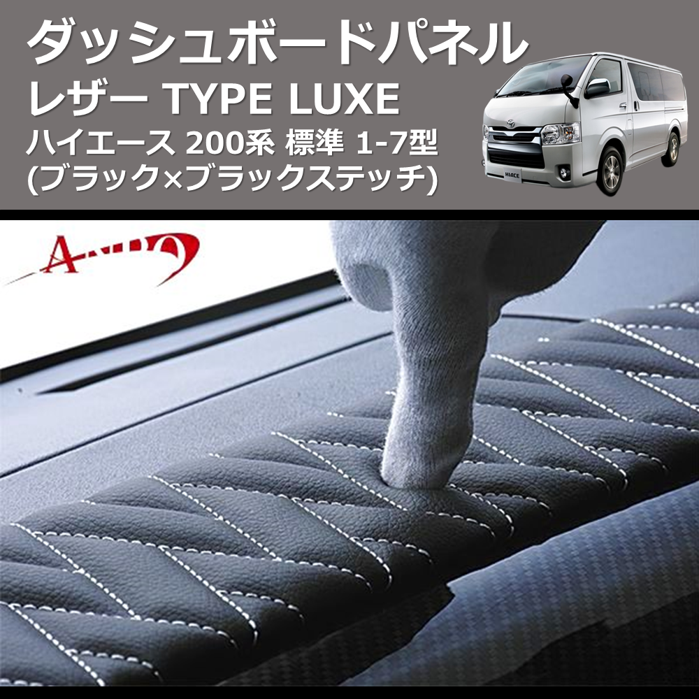 (ブラック×ブラックステッチ) レザーダッシュボードパネルTYPE LUXE ハイエース 200系 標準 1-7型