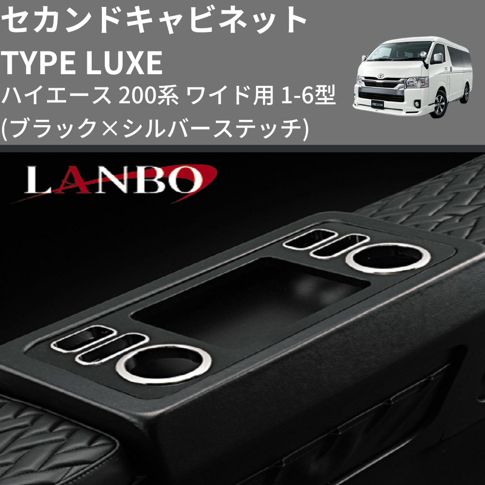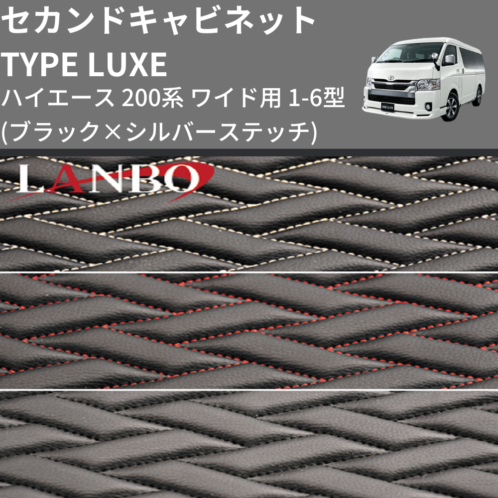 (ブラック×シルバーステッチ) セカンドキャビネット TYPE LUXE ハイエース 200系 ワイド用 1-6型
