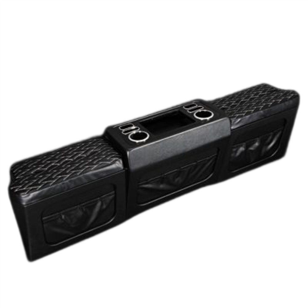 センター部にはピアノブラックカラーのテーブルを設けており、ドリンクホルダー、スマホホルダー、シガレットホルダーを配置。