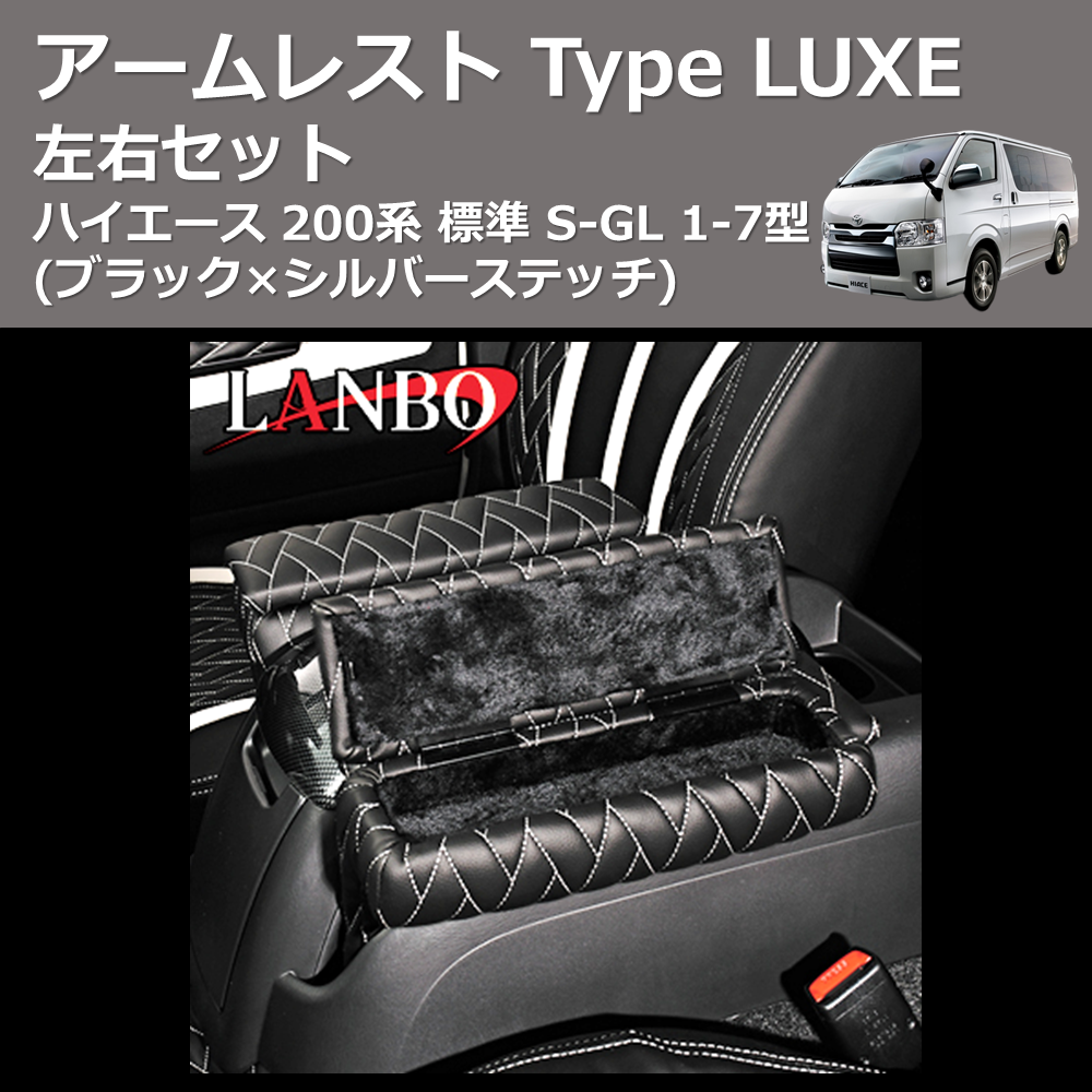 (ブラック×シルバーステッチ) アームレスト Type LUXE ハイエース 200系 標準 S-GL 1-7型 左右セット