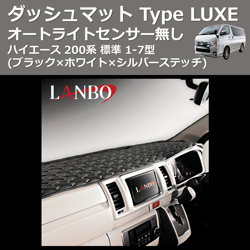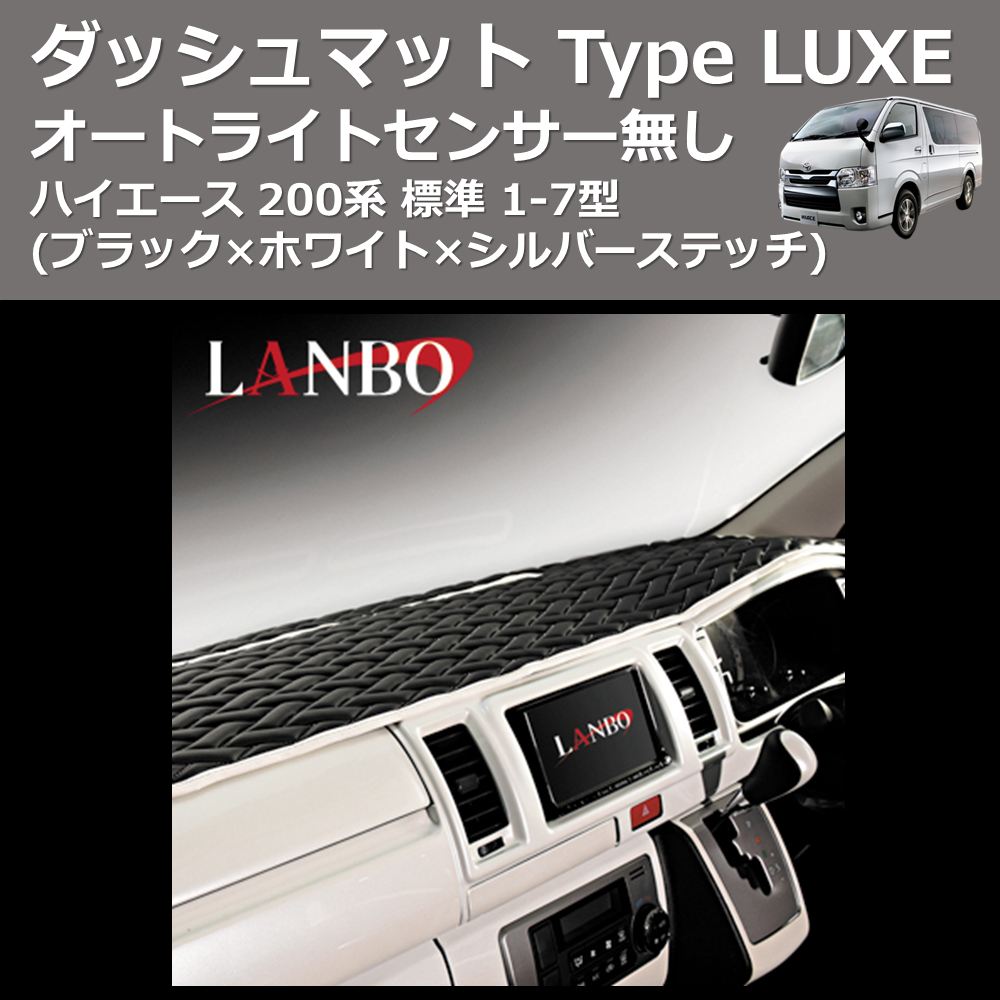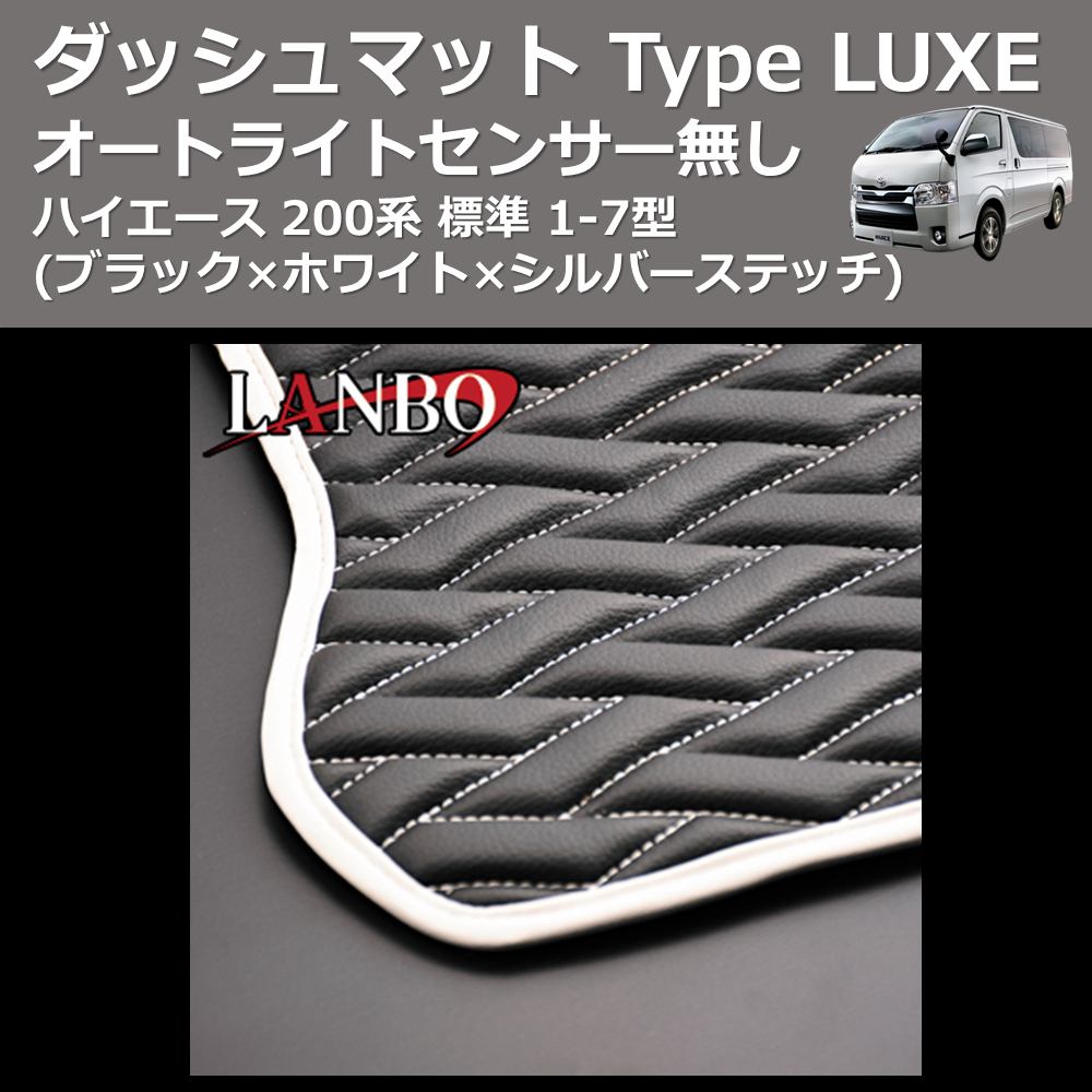 (ブラック×ホワイト×シルバーステッチ) オートライトセンサー無し ダッシュマット Type LUXE ハイエース 200系 標準 1-7型