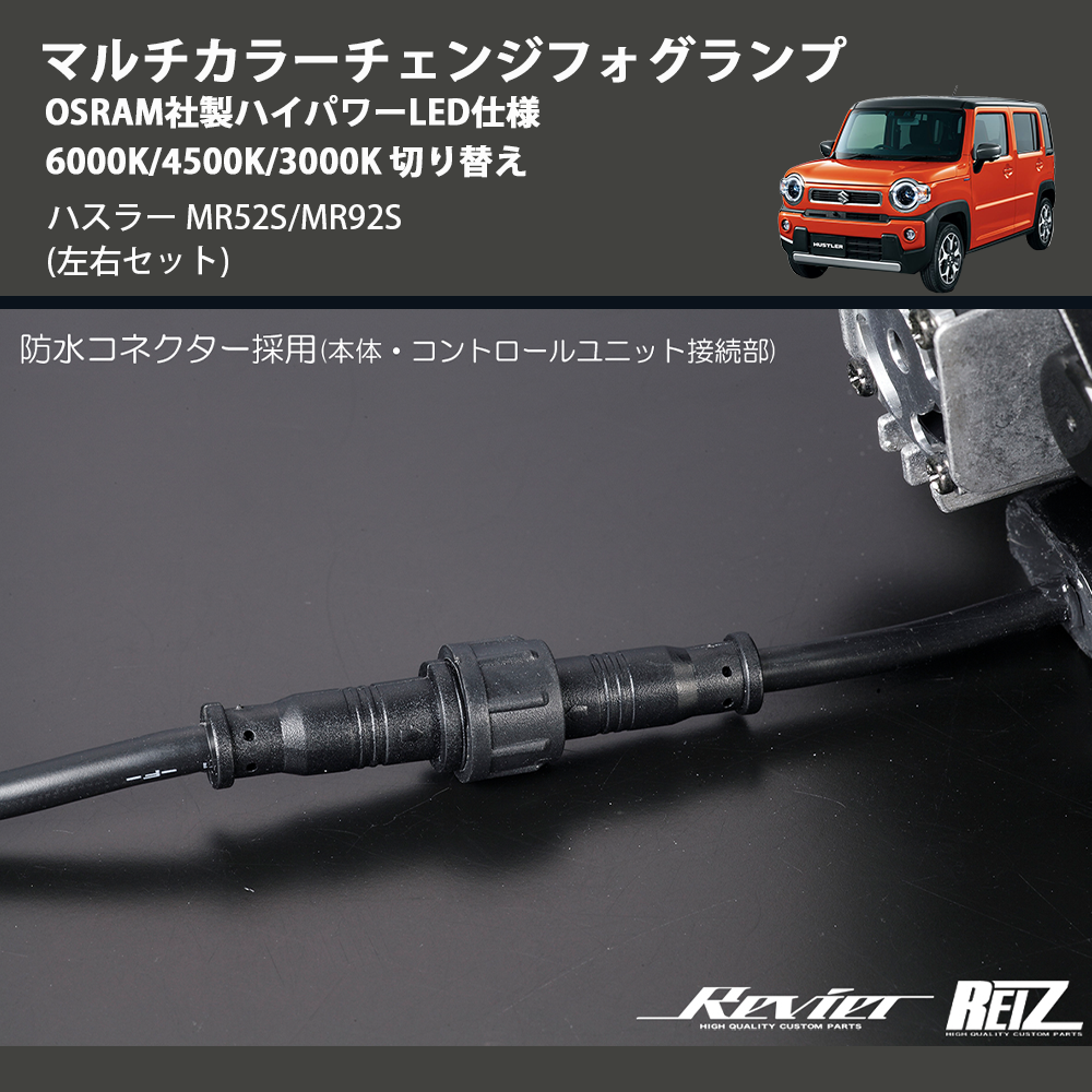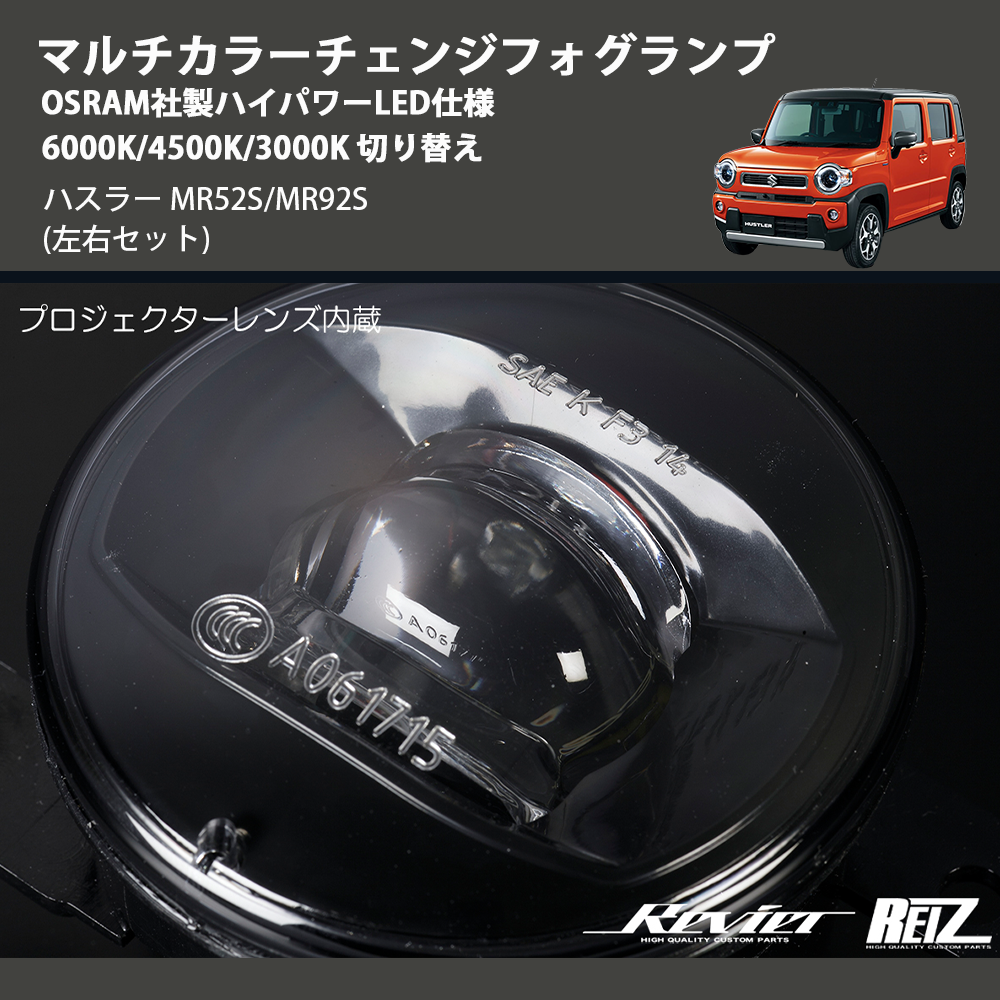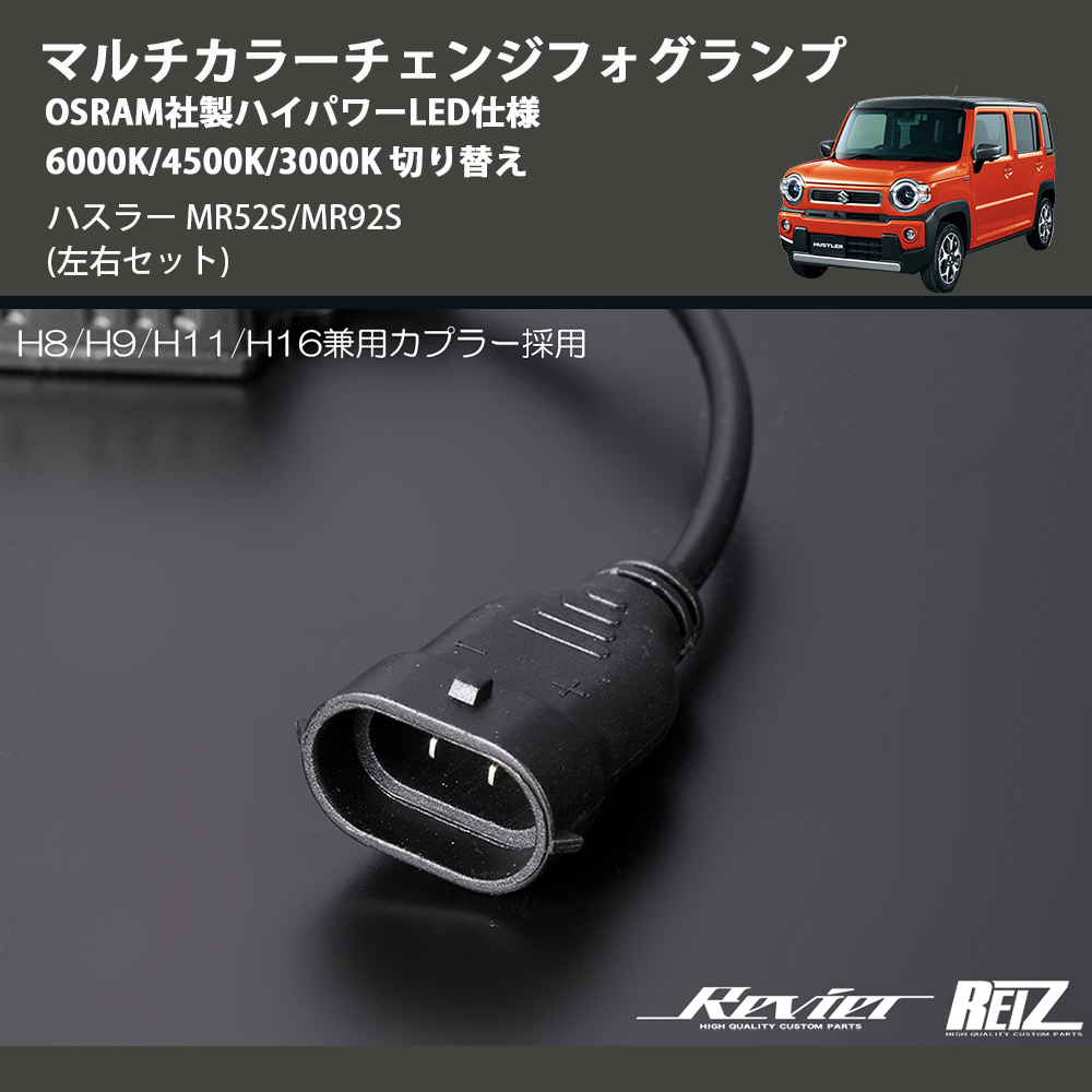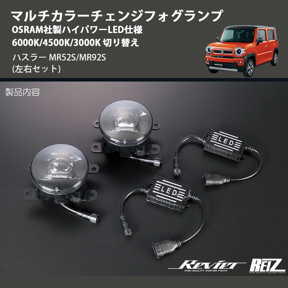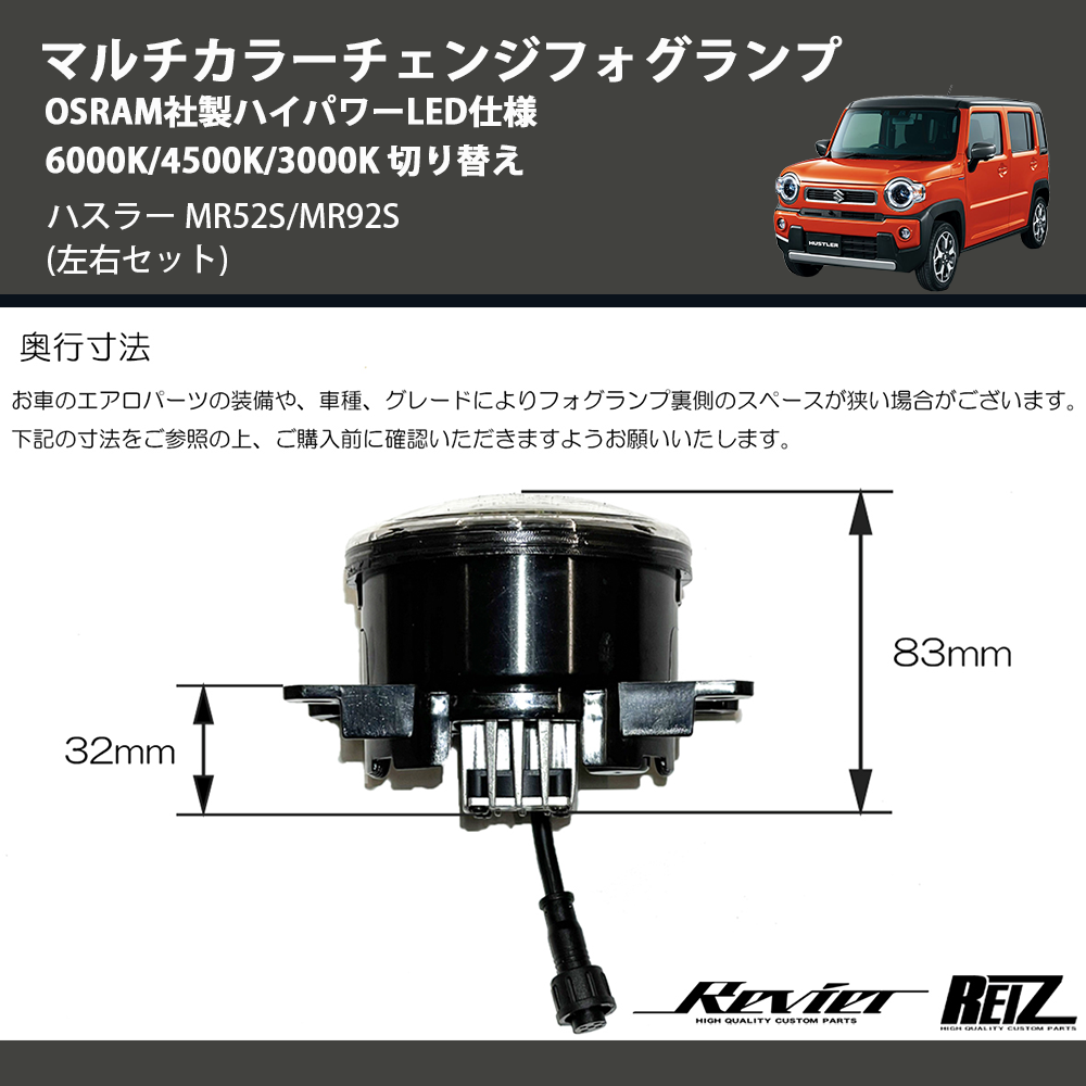 在庫状況により、お届けまでに約2ヶ月ほどお時間をいただく場合がございます。お急ぎの方はお気軽にお問合せください。 【KEYWORD】 ハスラー / MR52S/MR92S / マルチカラーチェンジフォグランプ OSRAM社製ハイパワーLED仕様 6000K/4500K/3000K 切り替え / カスタムパーツ