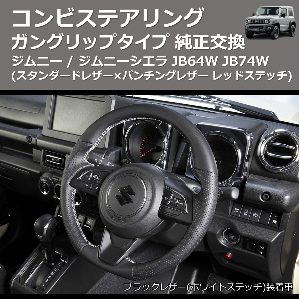 (スタンダードレザー×パンチングレザー レッドステッチ) ガングリップタイプ 純正交換 コンビステアリング ジムニー / ジムニーシエラ JB64W JB74W