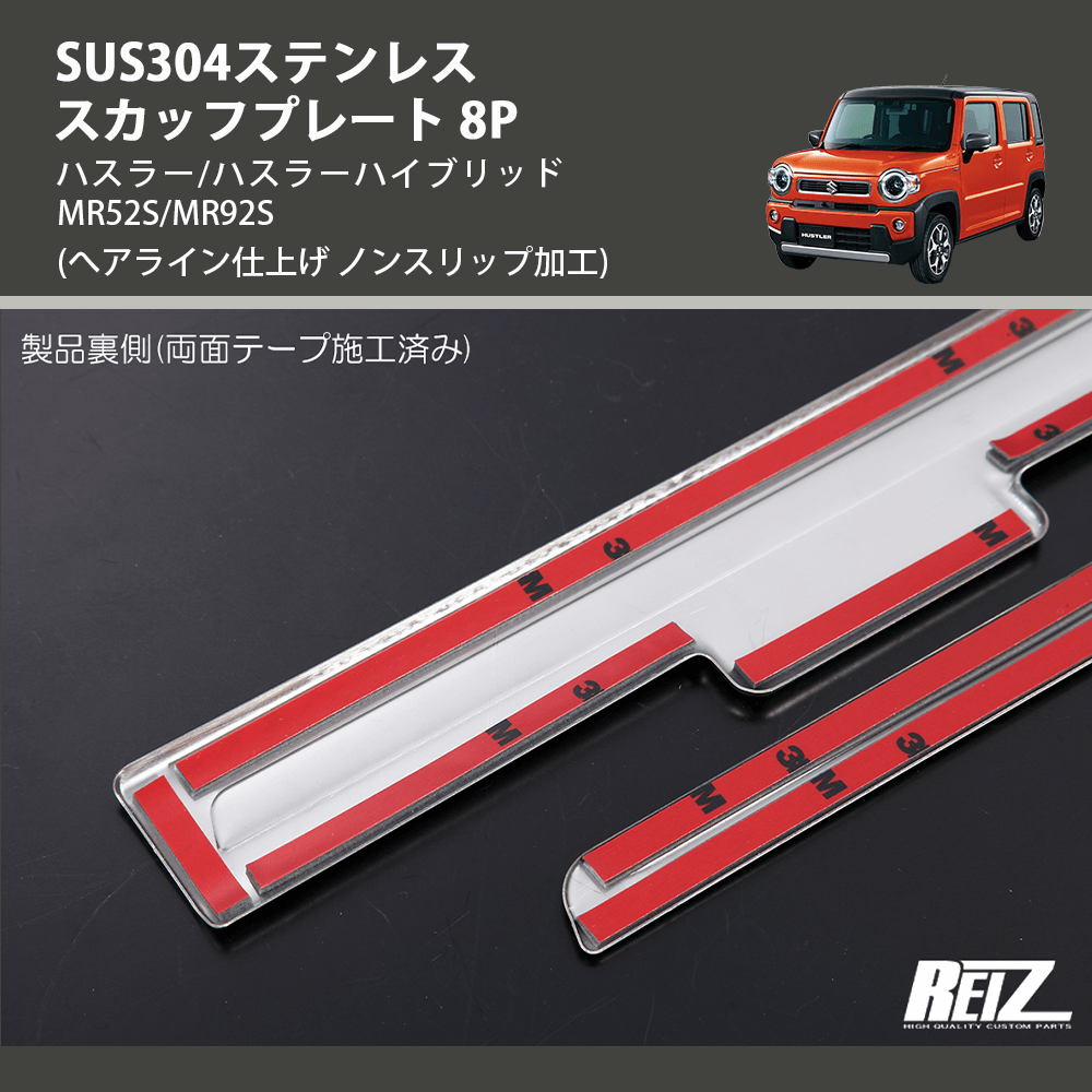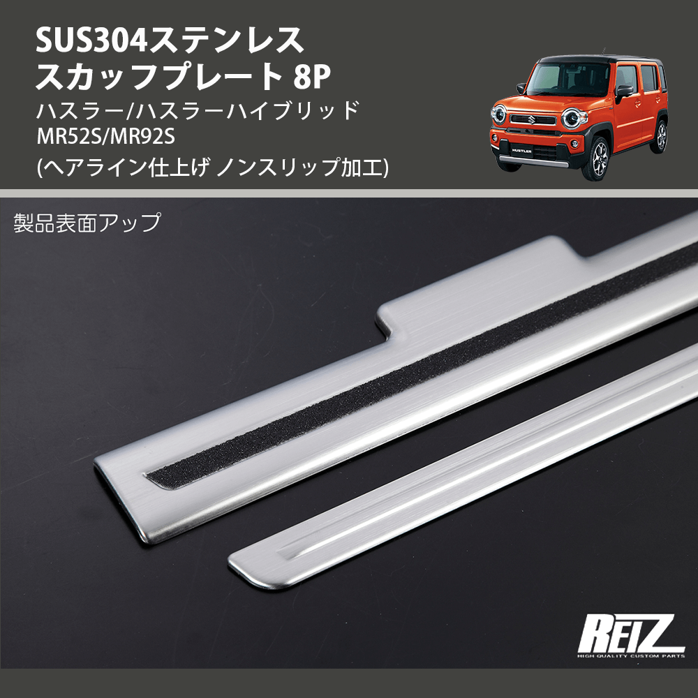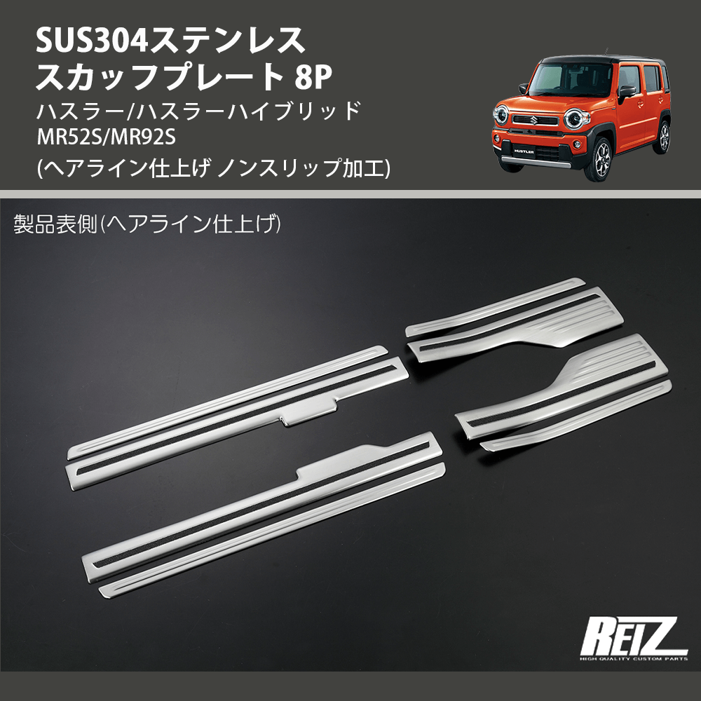(へアライン仕上げ ノンスリップ加工) SUS304ステンレス スカッフプレート 8P ハスラー/ハスラーハイブリッド MR52S/MR92S