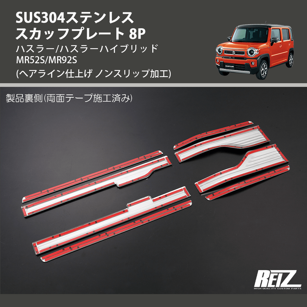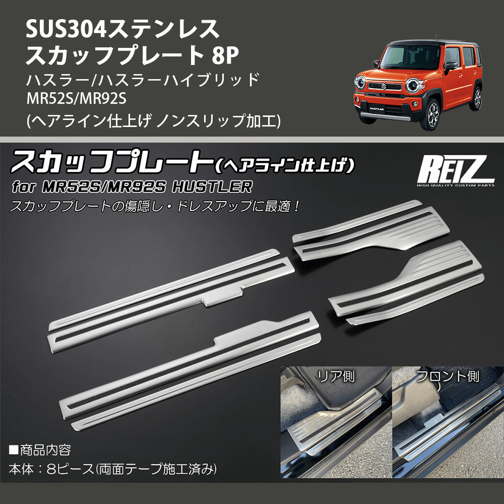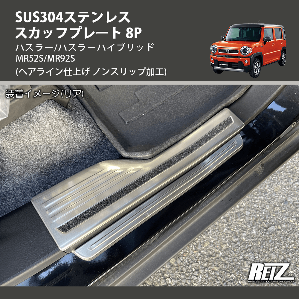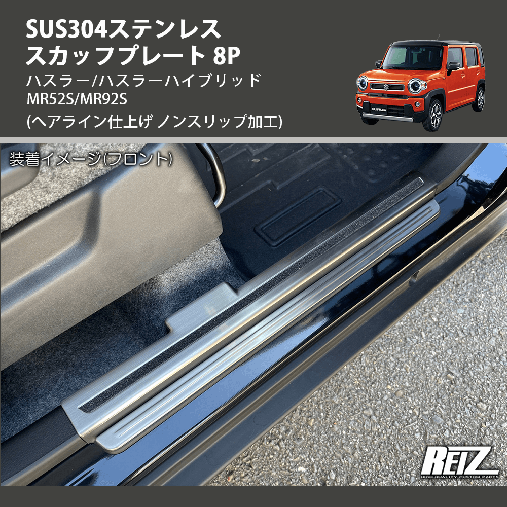 (へアライン仕上げ ノンスリップ加工) SUS304ステンレス スカッフプレート 8P ハスラー/ハスラーハイブリッド MR52S/MR92S