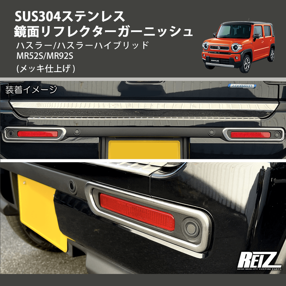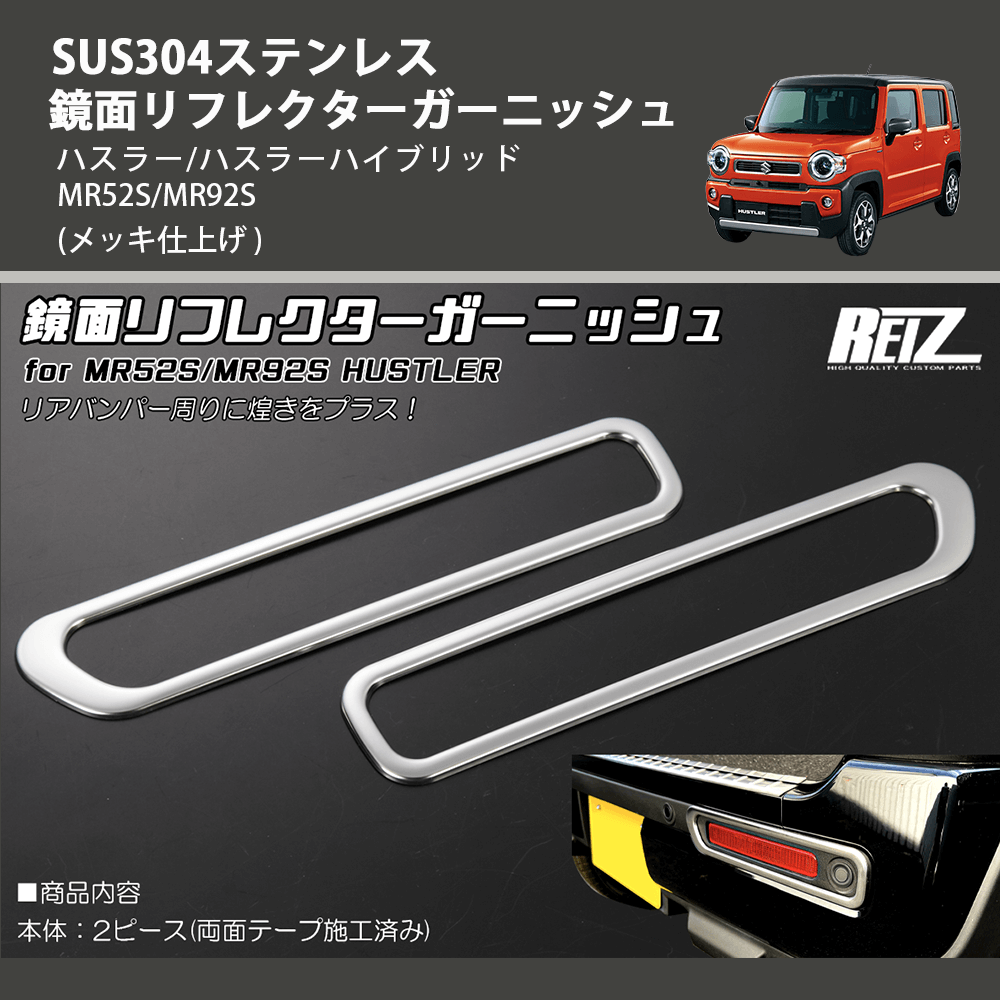 (メッキ仕上げ) SUS304ステンレス 鏡面リフレクターガーニッシュ ハスラー/ハスラーハイブリッド MR52S/MR92S