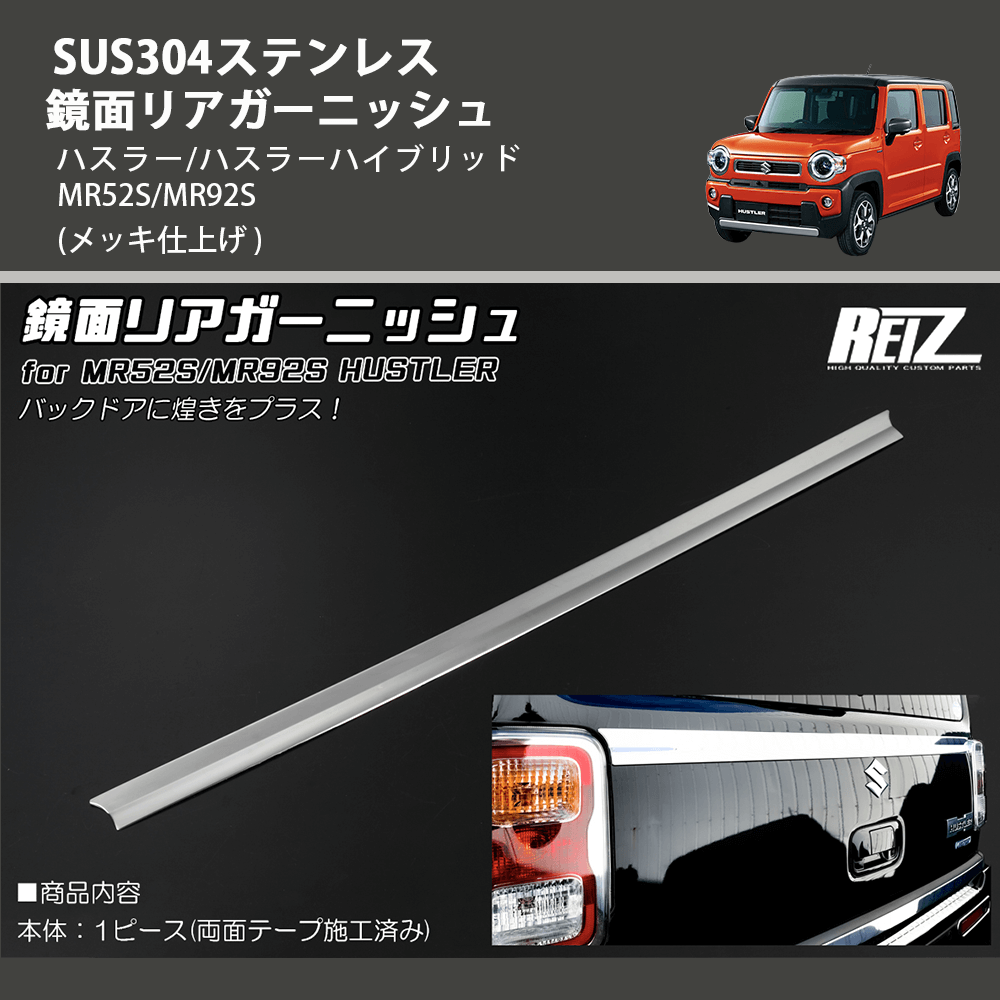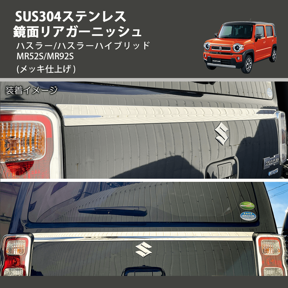 (メッキ仕上げ) SUS304ステンレス 鏡面リアガーニッシュ ハスラー/ハスラーハイブリッド MR52S/MR92S