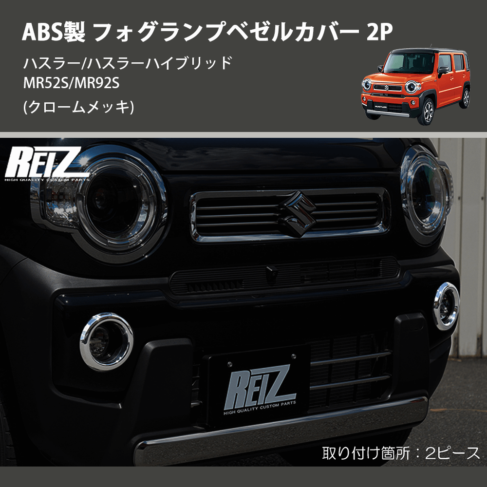 (クロームメッキ) ABS製 フォグランプベゼルカバー 2P ハスラー/ハスラーハイブリッド MR52S/MR92S