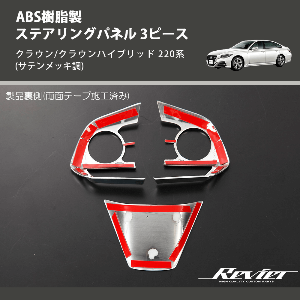 (サテンメッキ調) ABS樹脂製 ステアリングパネル 3ピース クラウン/クラウンハイブリッド 220系
