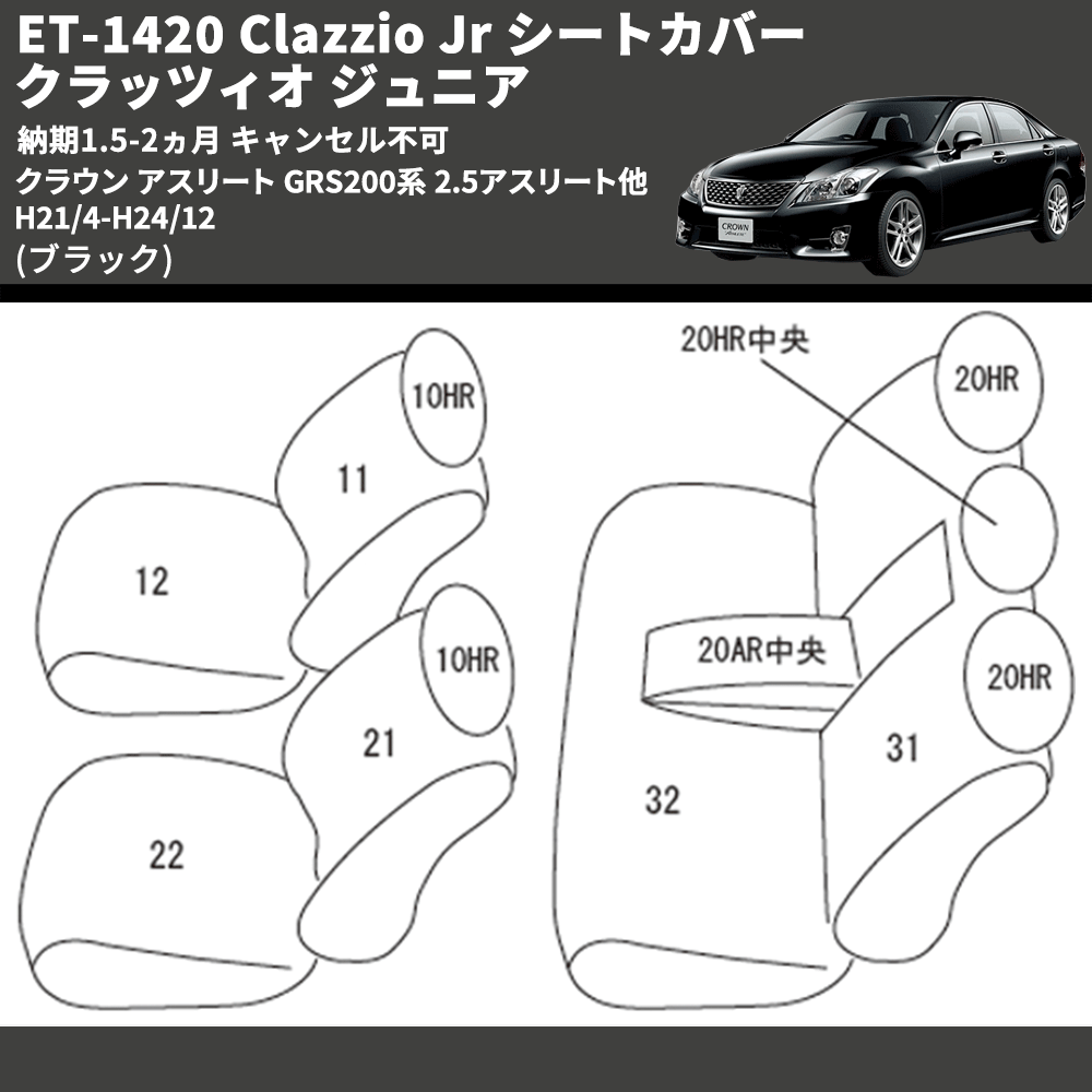 (ブラック) ET-1420 Clazzio Jr シートカバー クラッツィオ ジュニア クラウン アスリート GRS200系 2.5アスリート他 H21/4-H24/12 納期1.5-2ヵ月 キャン不可