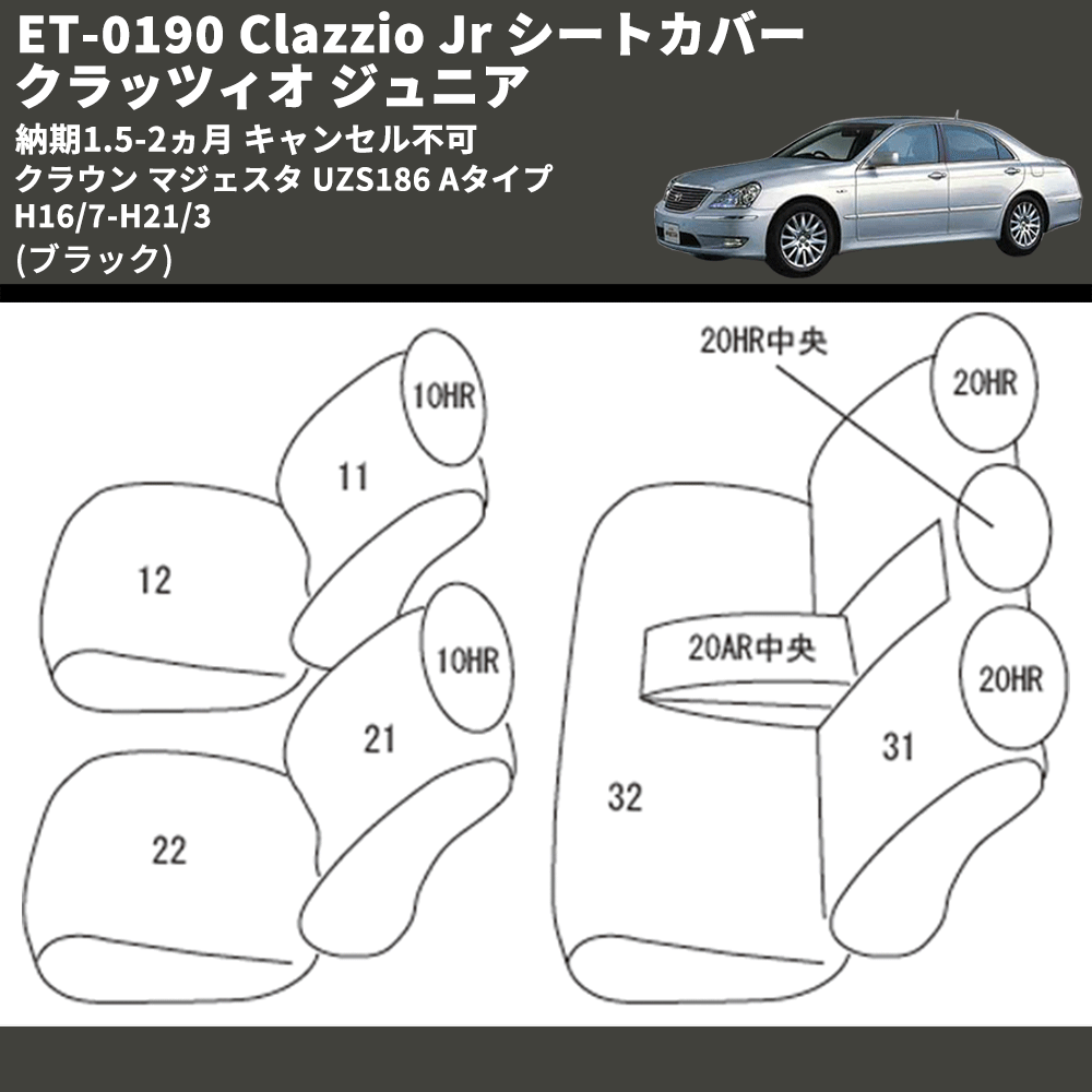 (ブラック) ET-0190 Clazzio Jr シートカバー クラッツィオ ジュニア クラウン マジェスタ UZS186 Aタイプ H16/7-H21/3 納期1.5-2ヵ月 キャンセル不可