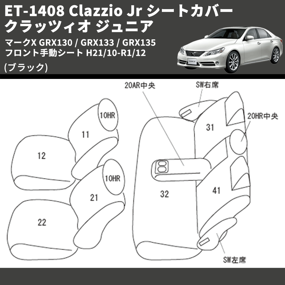 (ブラック) ET-1408 Clazzio Jr シートカバー クラッツィオ ジュニア マークX GRX130 / GRX133 / GRX135 フロント手動シート H21/10-R1/12