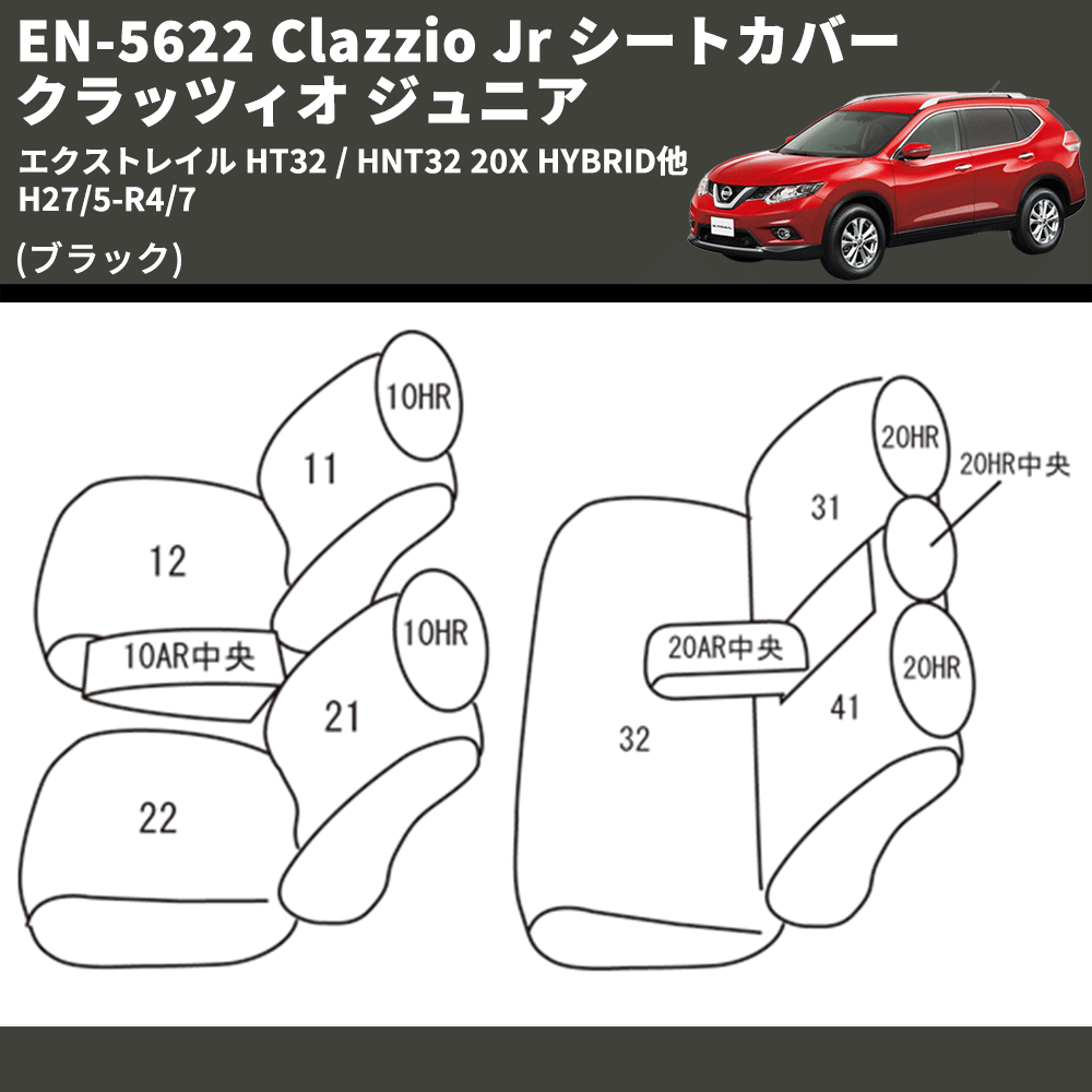 (ブラック) EN-5622 Clazzio Jr シートカバー クラッツィオ ジュニア エクストレイル HT32 / HNT32 20X HYBRID他 H27/5-R4/7