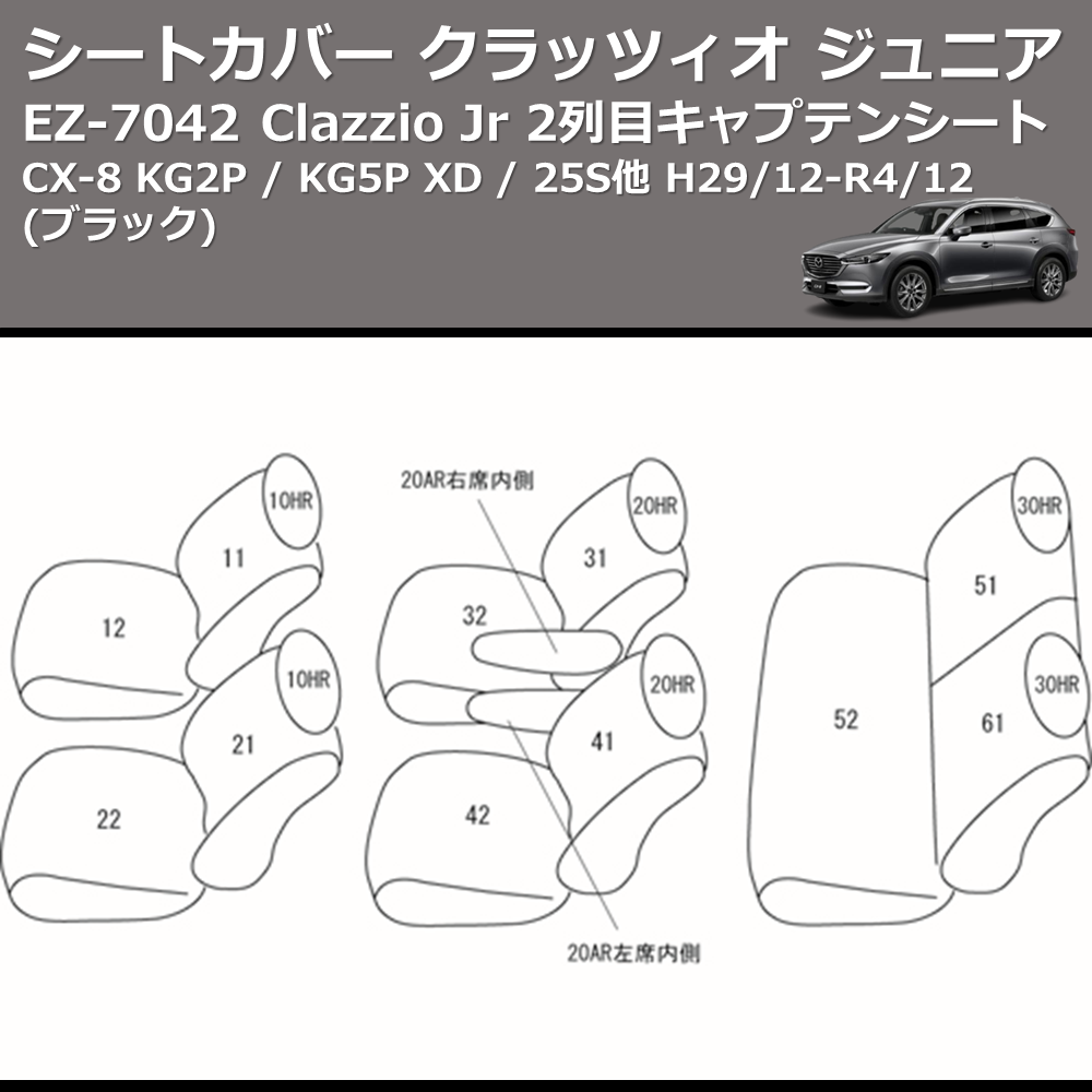 (ブラック) EZ-7042 Clazzio Jr シートカバー クラッツィオ ジュニア CX-8 KG2P / KG5P XD / 25S他 H29/12-R4/12 2列目キャプテンシート
