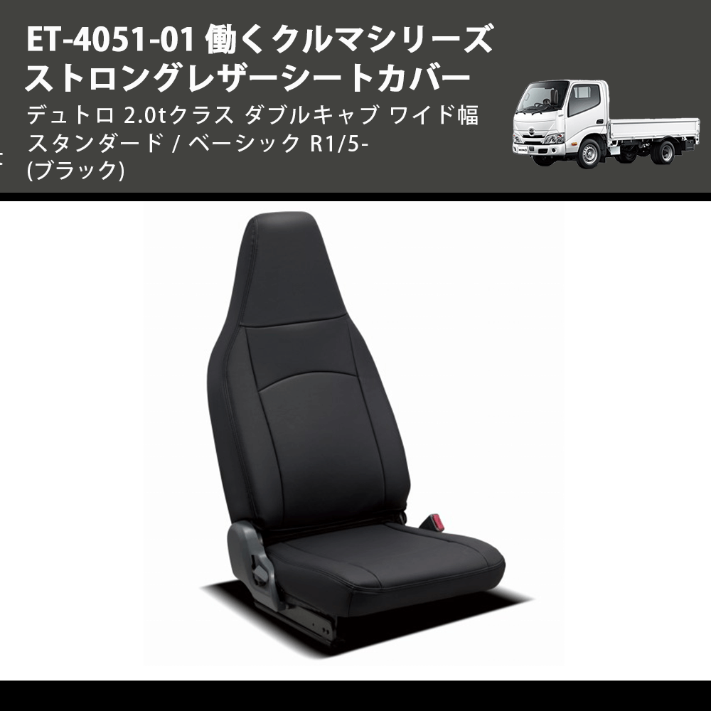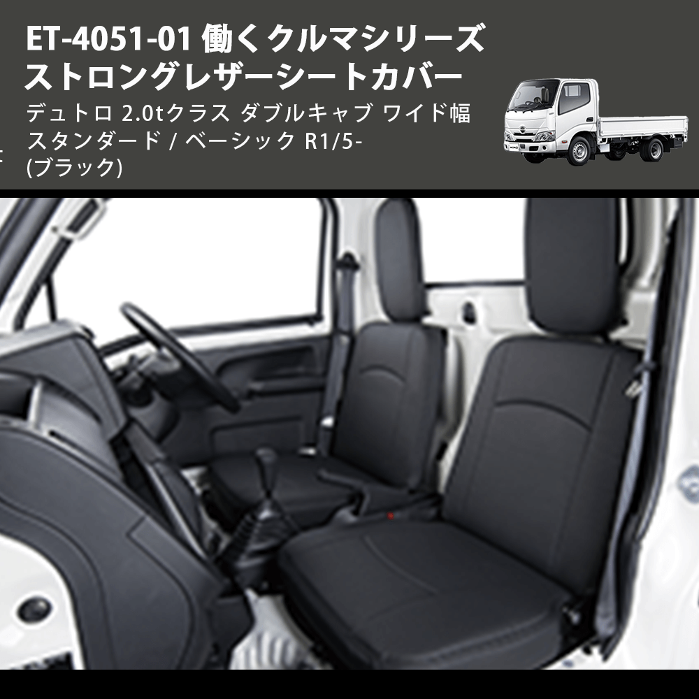 (ブラック) ET-4051-01 働くクルマシリーズ ストロングレザーシートカバー デュトロ 2.0tクラス ダブルキャブワイド幅 スタンダード / ベーシック R1/5-