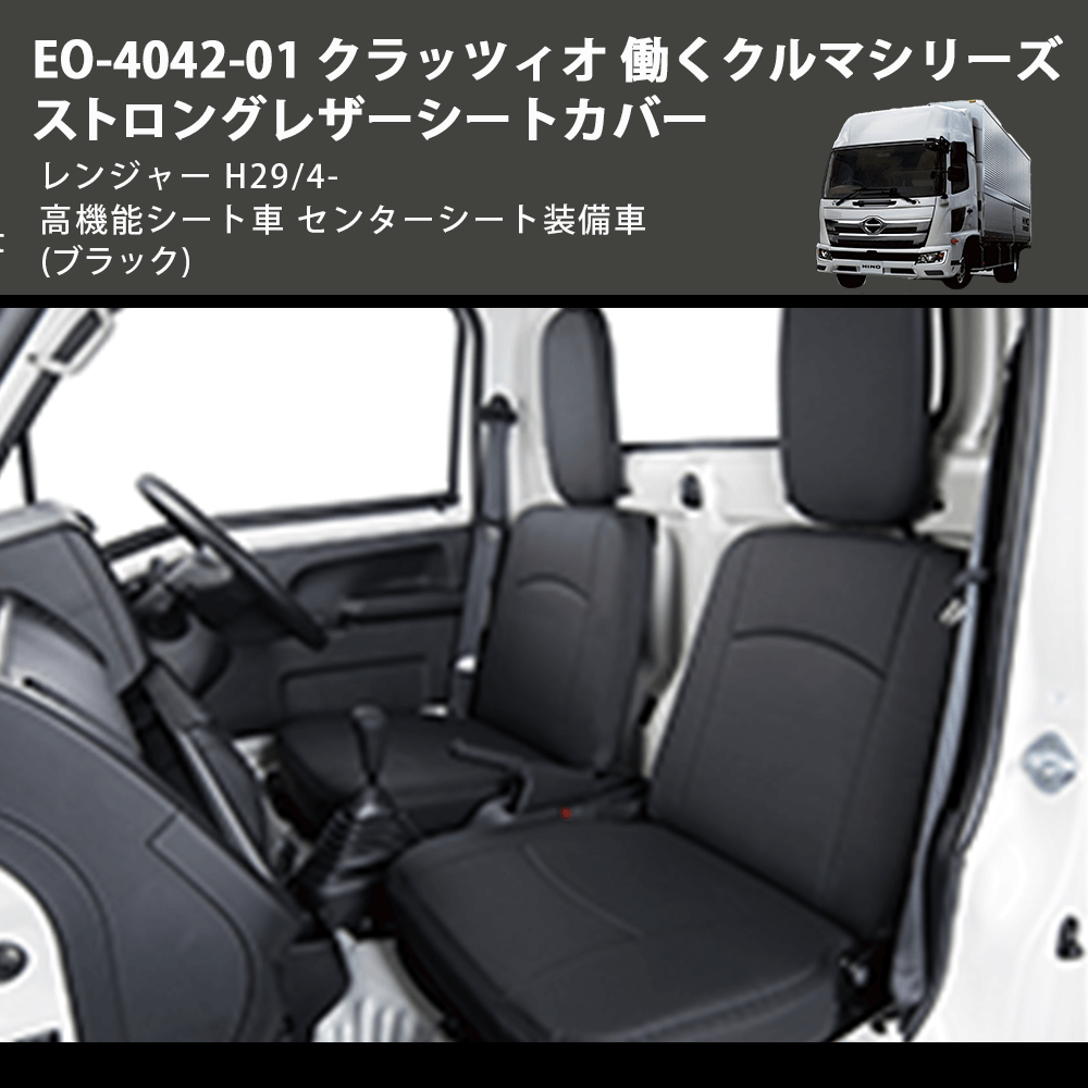 (ブラック) EO-4042-01 クラッツィオ 働くクルマシリーズ ストロングレザーシートカバー レンジャー H29/4- 高機能シート車 センターシート装備車