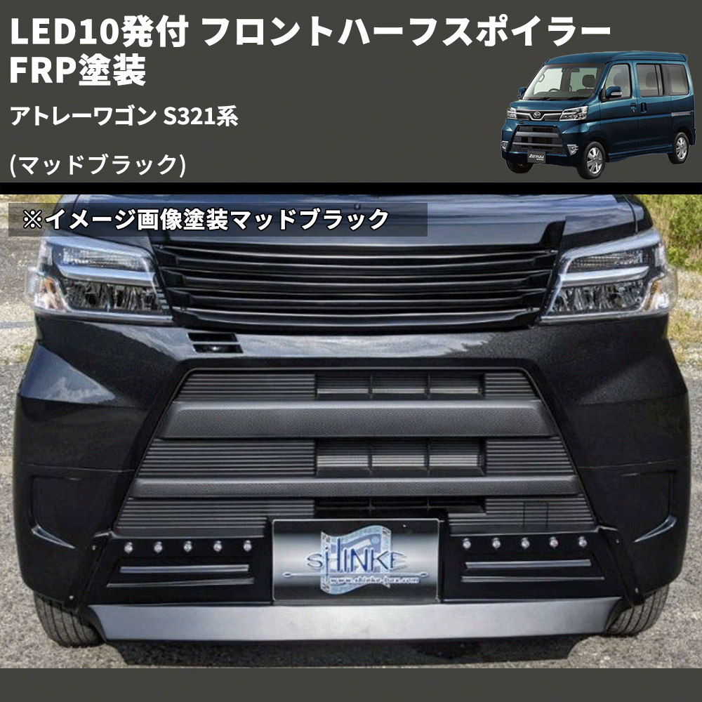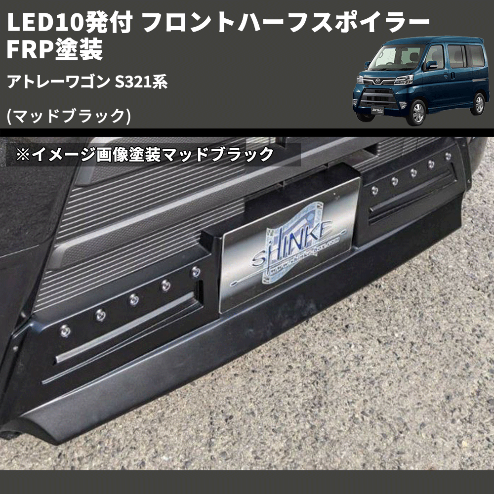 (マッドブラック) LED10発付 フロントハーフスポイラー アトレーワゴン S321系 FRP塗装