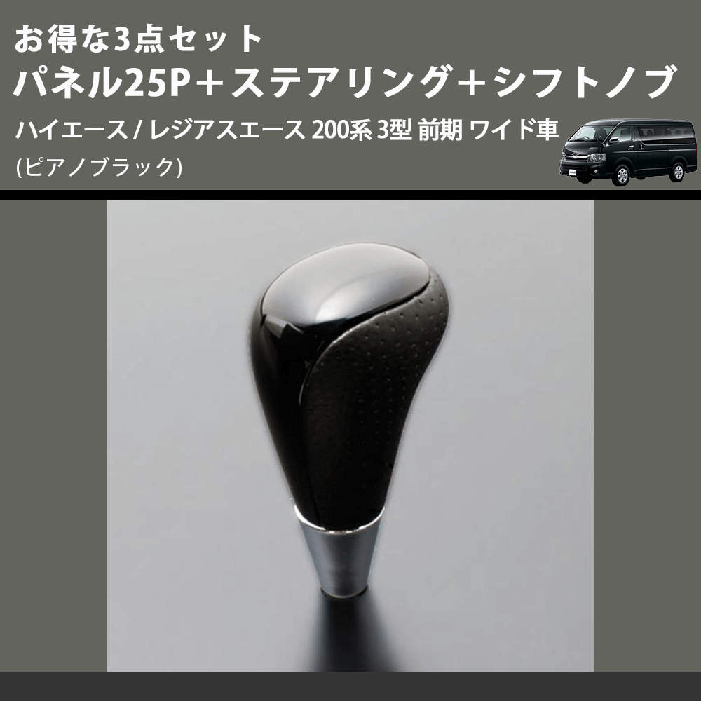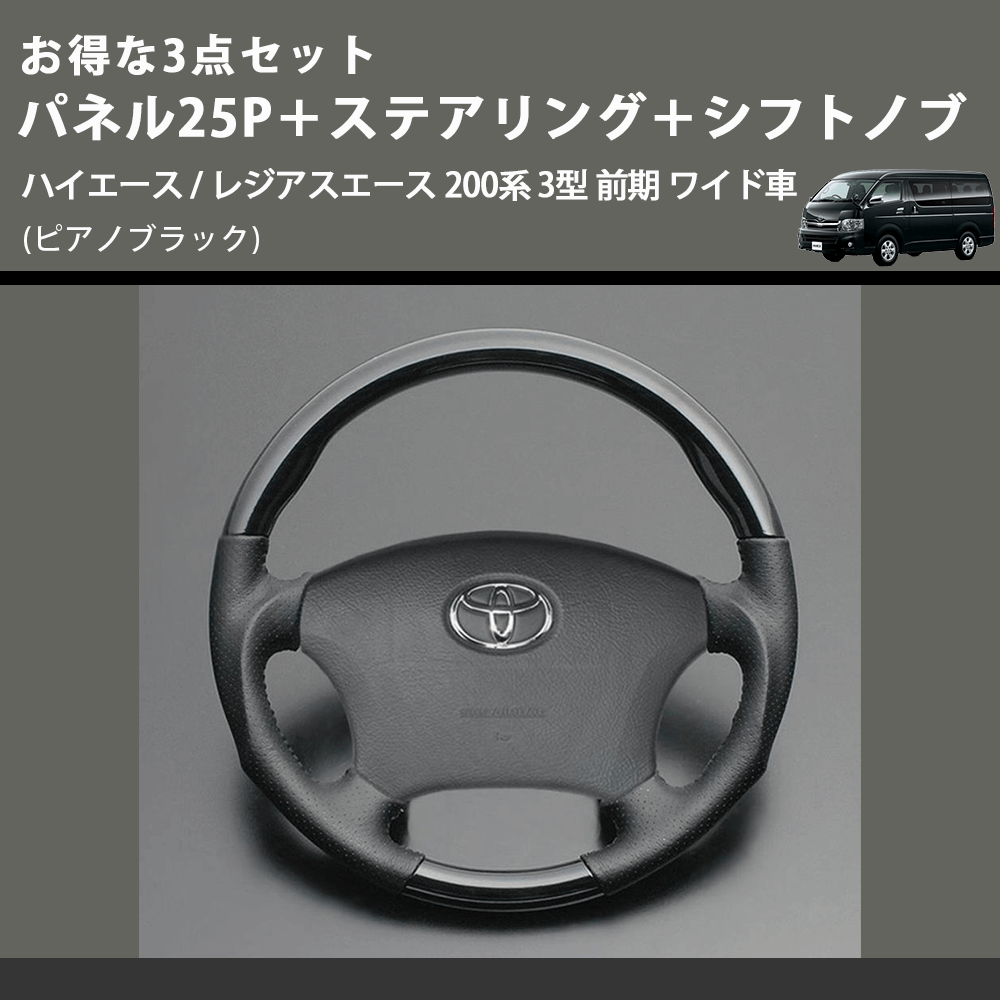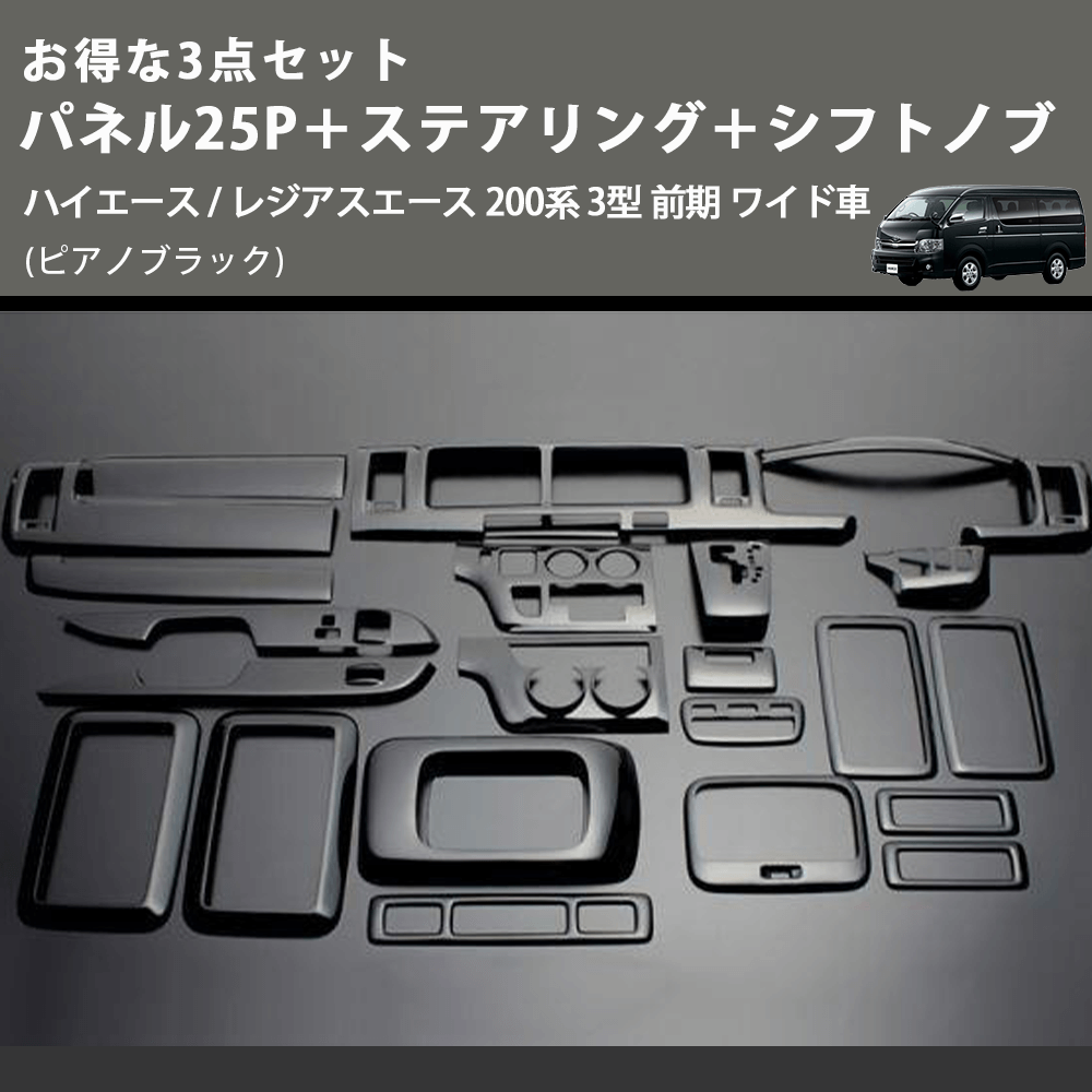 (ピアノブラック) お得な3点セット パネル25P+ステアリング+シフトノブ ハイエース / レジアスエース 200系 3型 前期 ワイド車