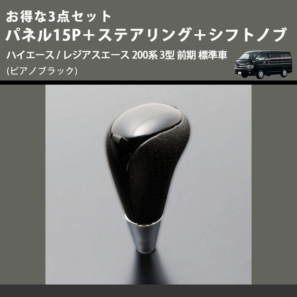 (ピアノブラック) お得な3点セット パネル15P+ステアリング+シフトノブ ハイエース / レジアスエース 200系 3型 前期 標準車
