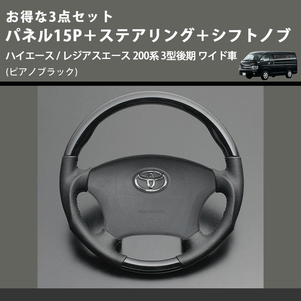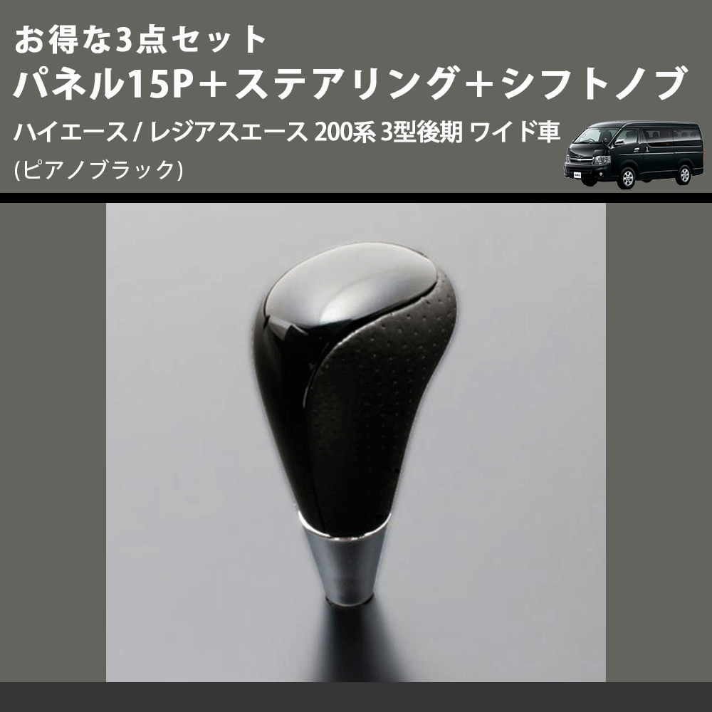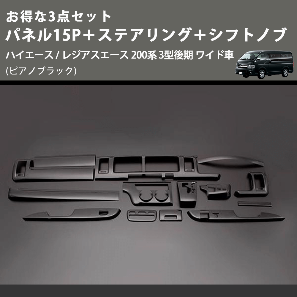 (ピアノブラック) お得な3点セット パネル15P+ステアリング+シフトノブ ハイエース / レジアスエース 200系 3型後期 ワイド車