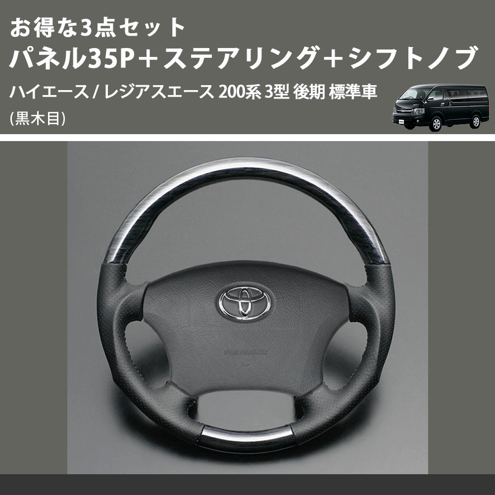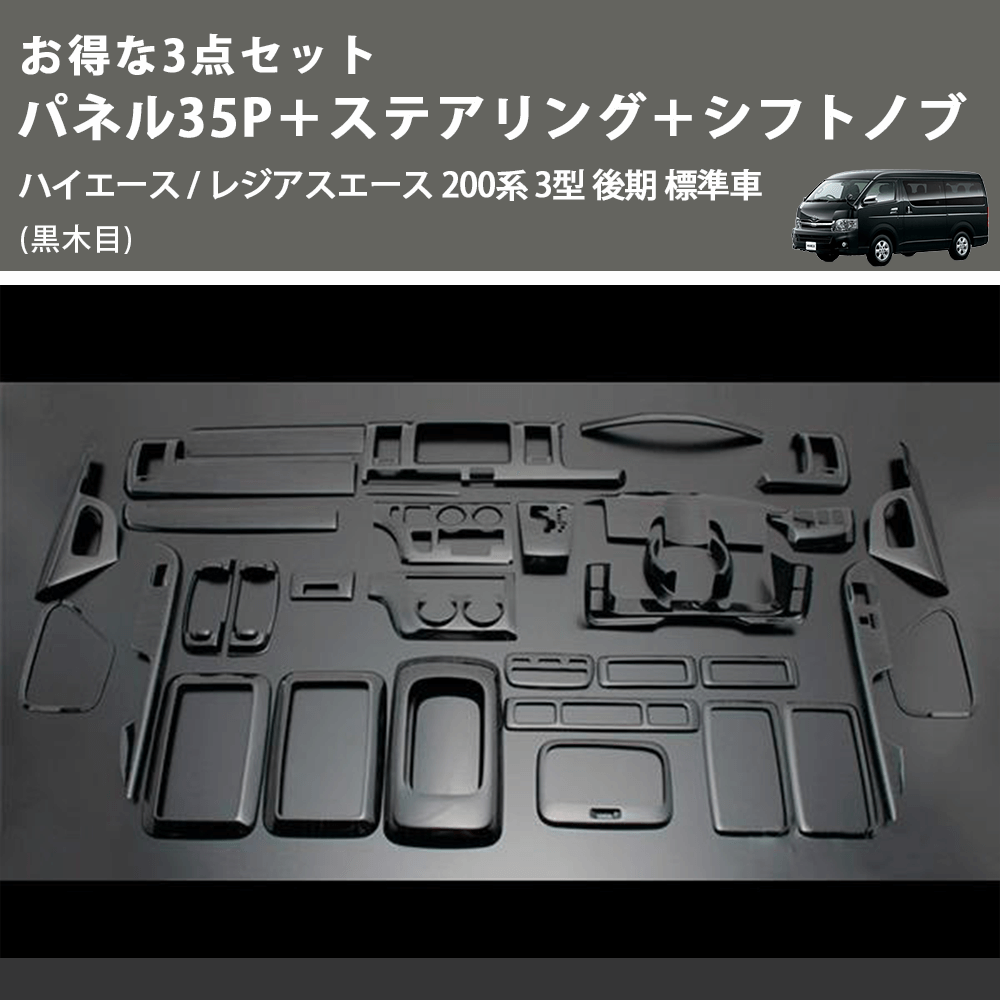 (黒木目) お得な3点セット パネル35P+ステアリング+シフトノブ ハイエース / レジアスエース 200系 3型 後期 標準車