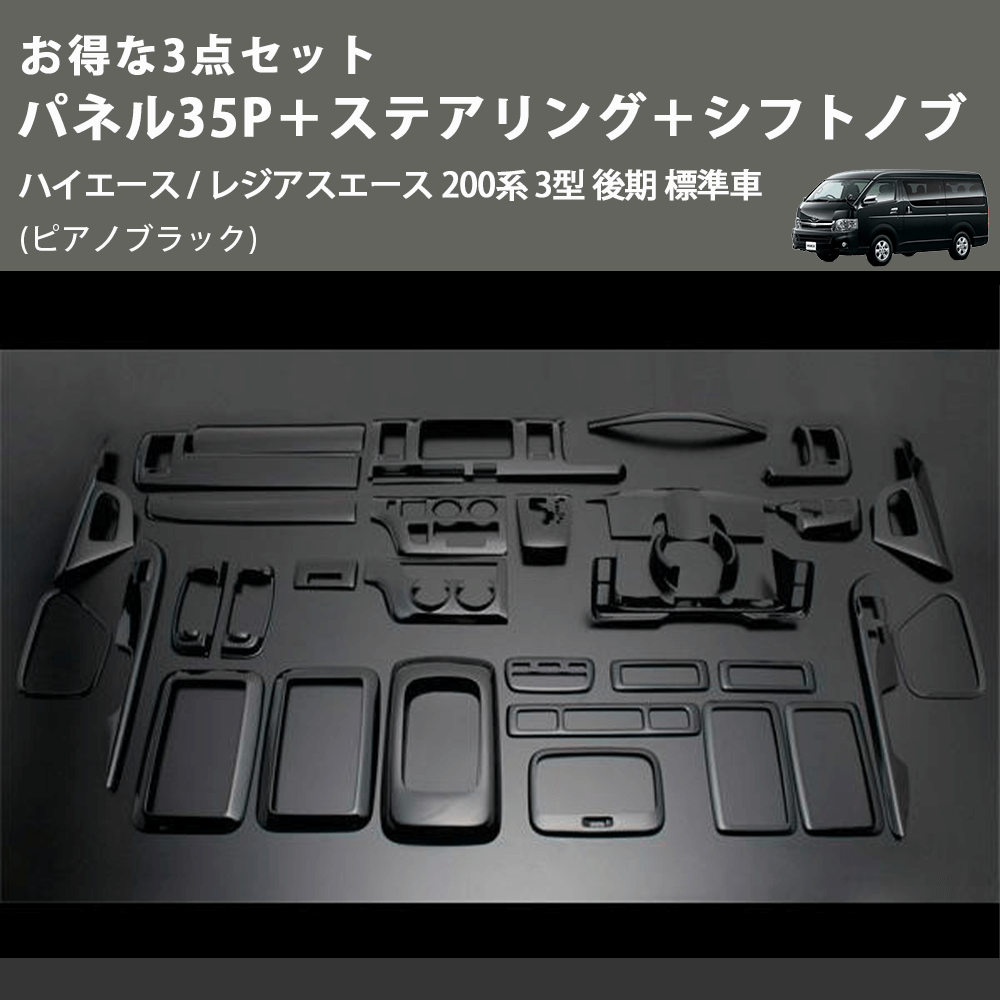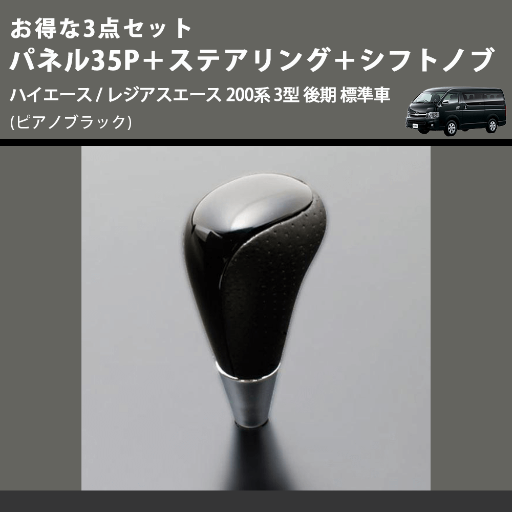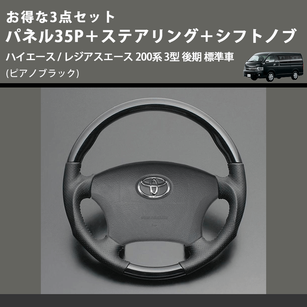 (ピアノブラック) お得な3点セット パネル35P+ステアリング+シフトノブ ハイエース / レジアスエース 200系 3型 後期 標準車