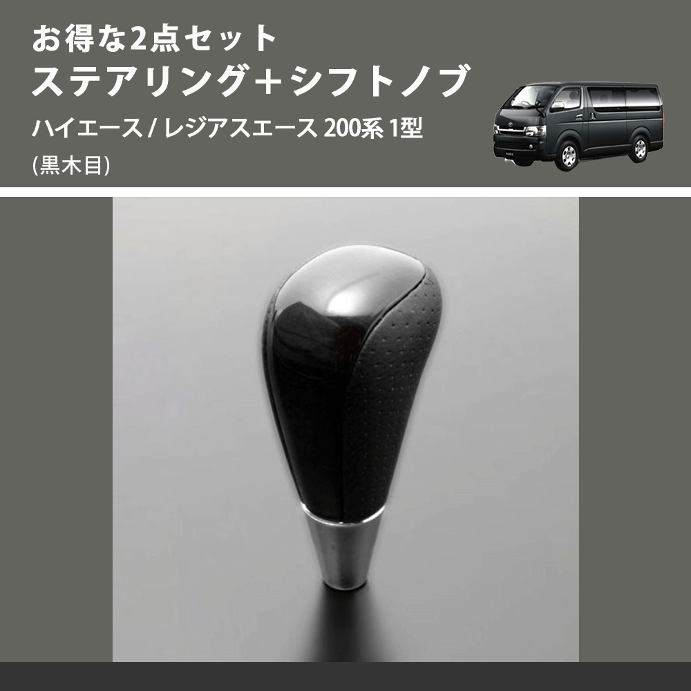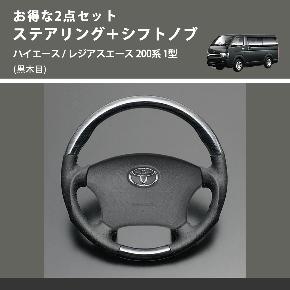 (黒木目) お得な2点セット ステアリング+シフトノブ ハイエース / レジアスエース 200系 1型