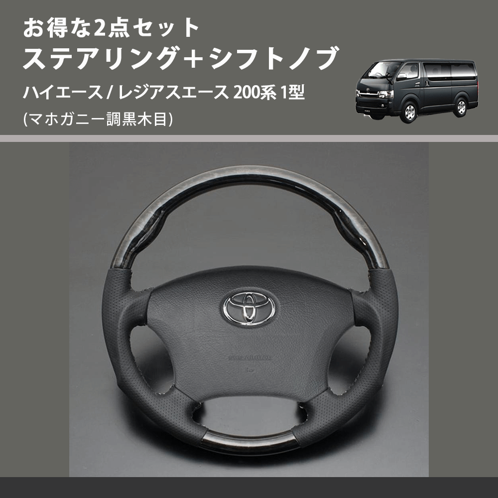 (マホガニー調黒木目) お得な2点セット ステアリング+シフトノブ ハイエース / レジアスエース 200系 1型