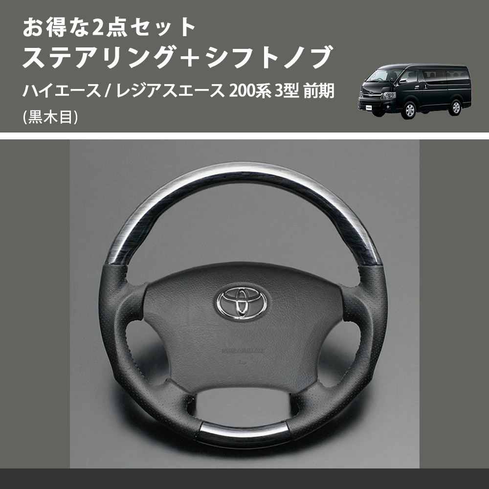 (黒木目) お得な2点セット ステアリング+シフトノブ ハイエース / レジアスエース 200系 3型 前期