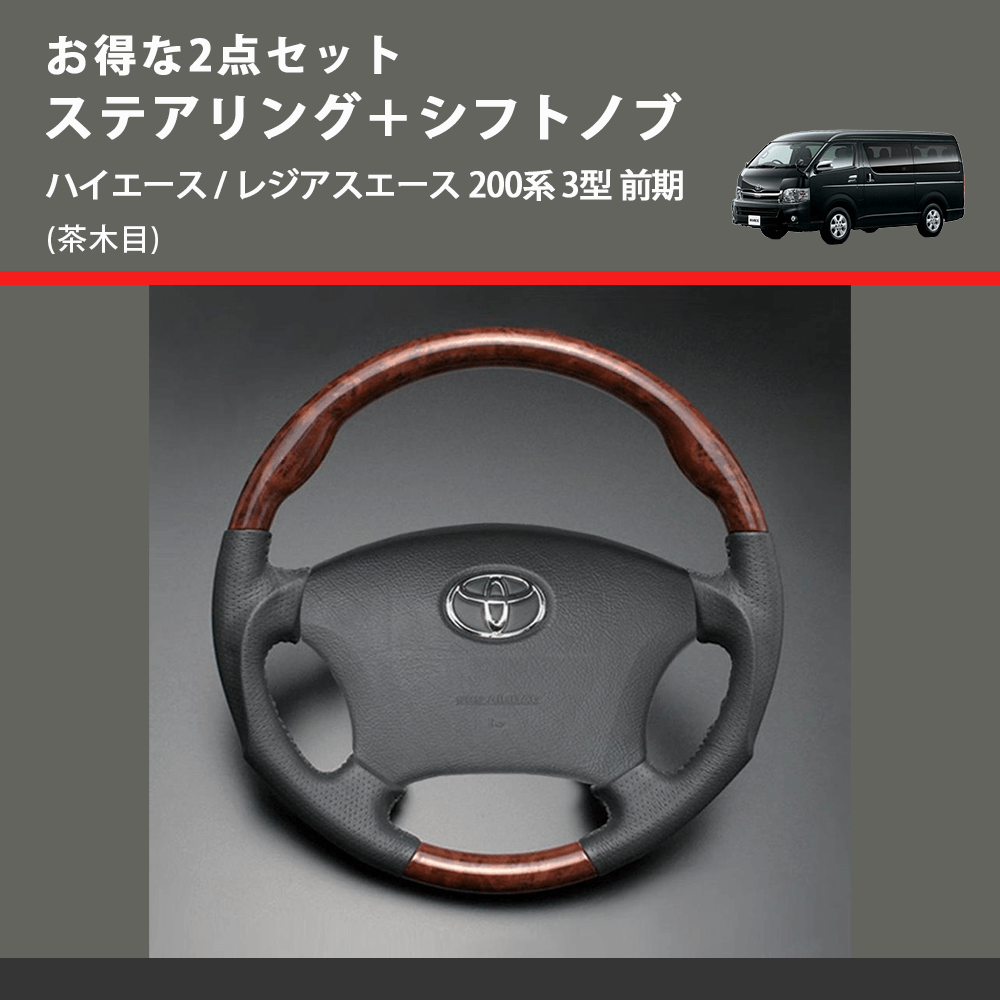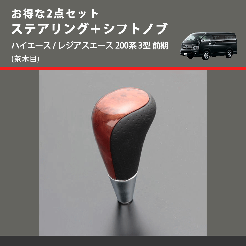 (茶木目) お得な2点セット ステアリング+シフトノブ ハイエース / レジアスエース 200系 3型 前期