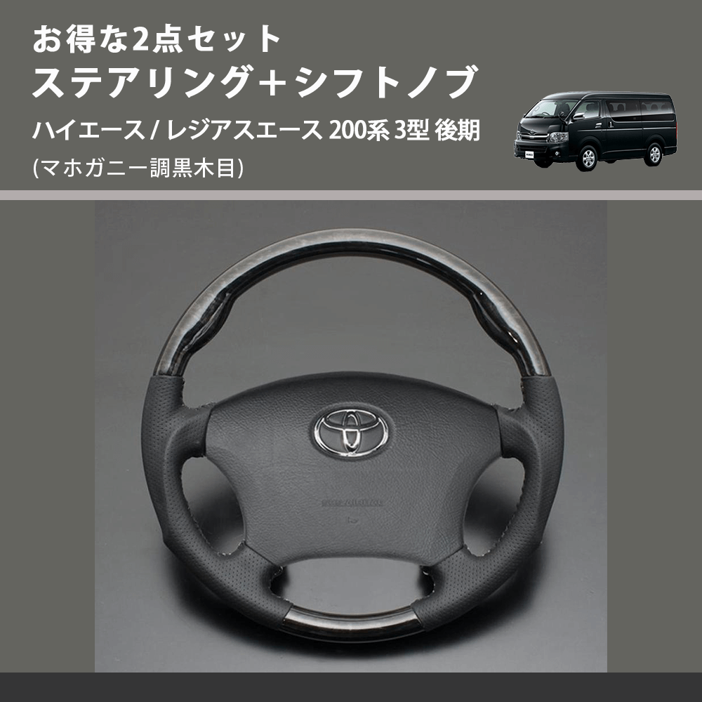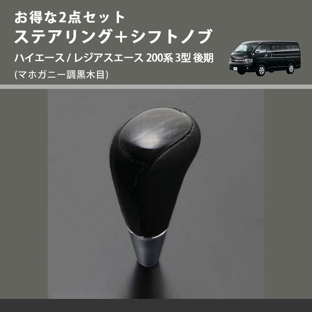 (マホガニー調黒木目) お得な2点セット ステアリング+シフトノブ ハイエース / レジアスエース 200系 3型 後期