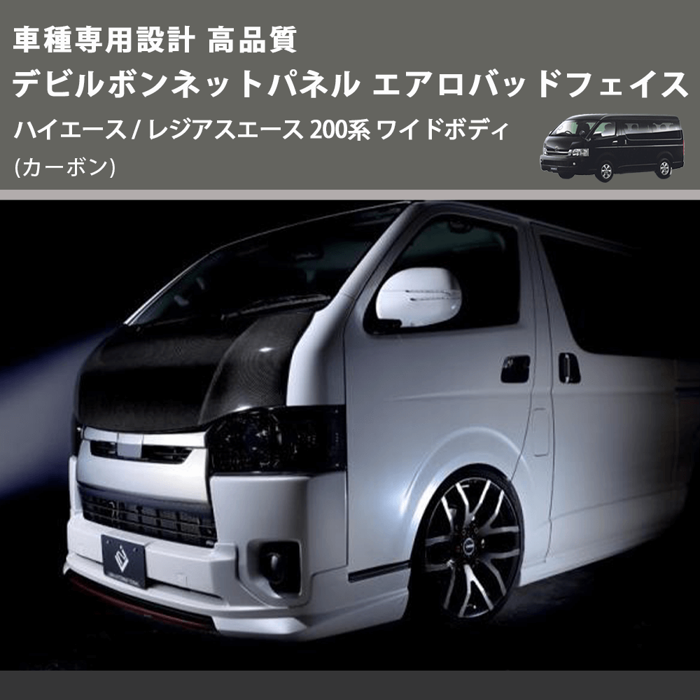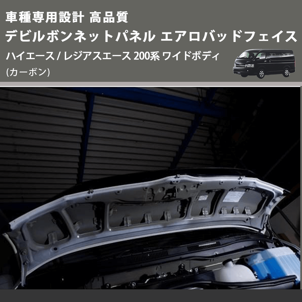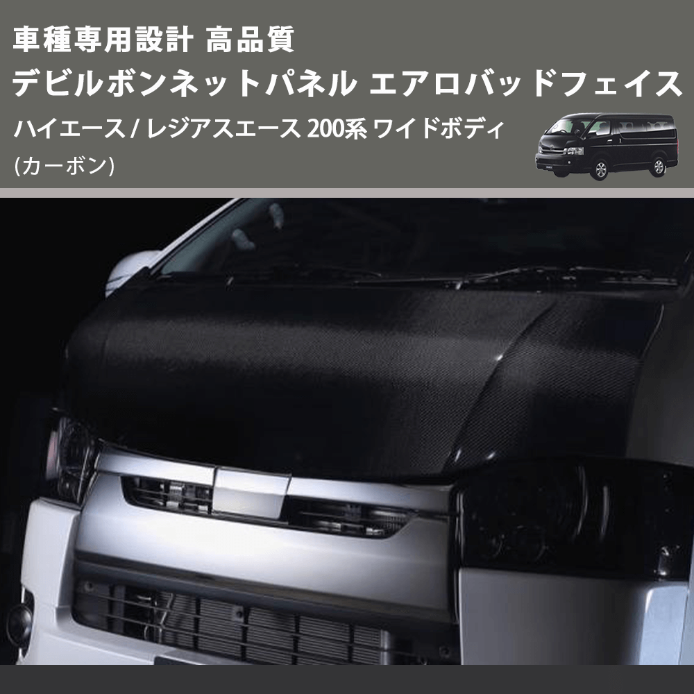 (カーボン) 車種専用設計 高品質 デビルボンネットパネル エアロバッドフェイス ハイエース / レジアスエース 200系 ワイドボディ