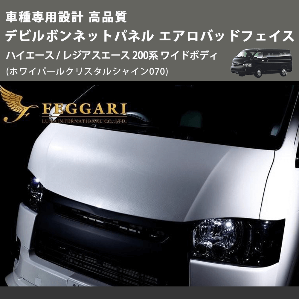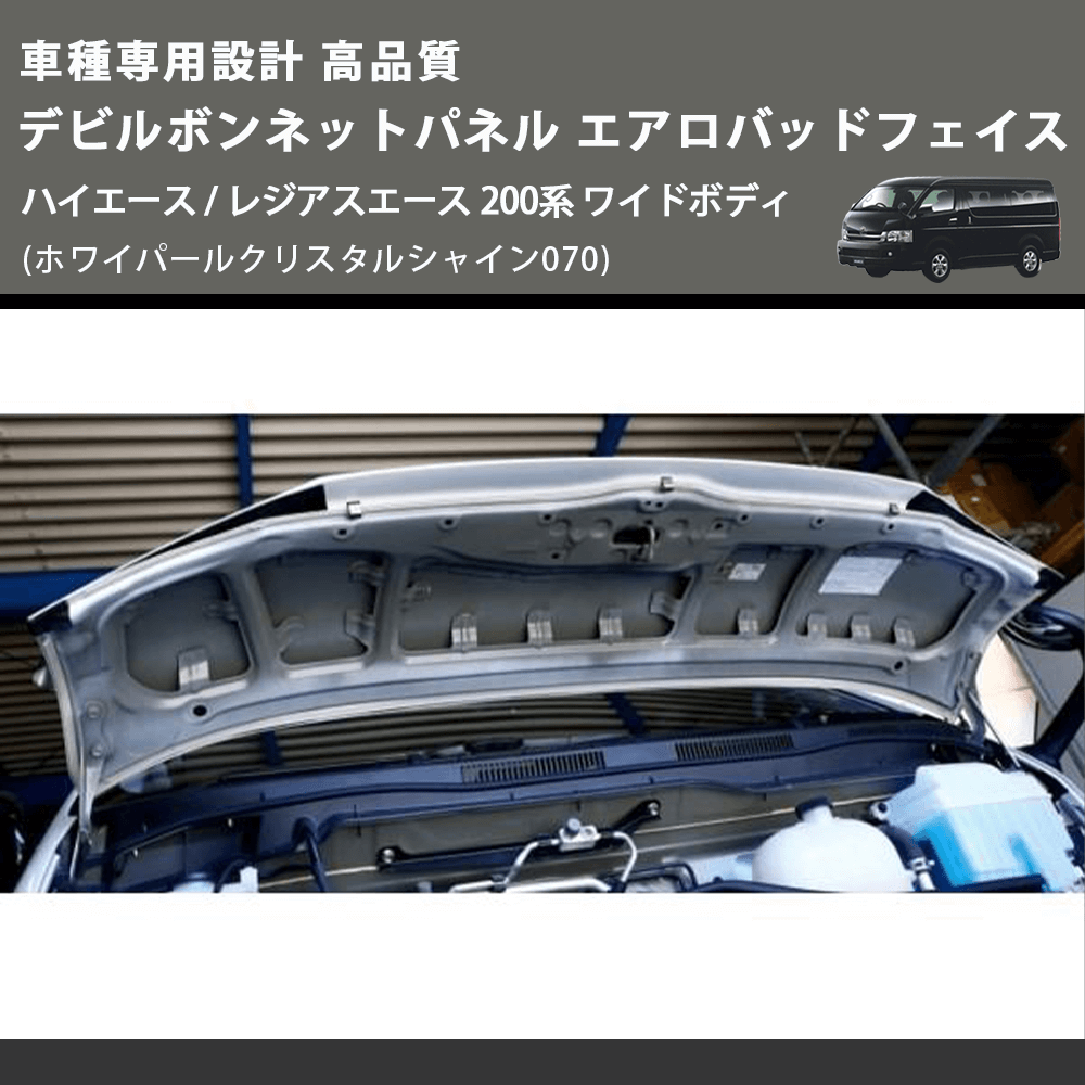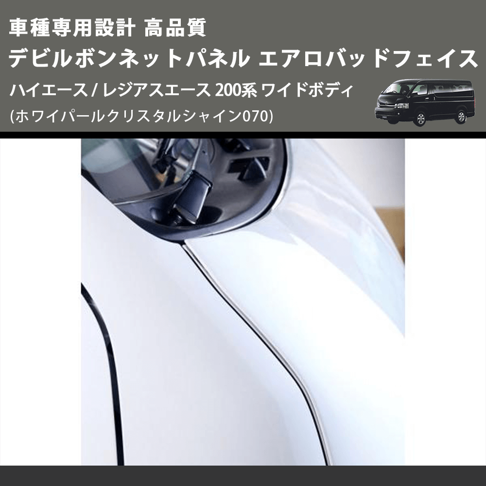 (ホワイパールクリスタルシャイン070) 車種専用設計 高品質 デビルボンネットパネル エアロバッドフェイス ハイエース / レジアスエース 200系 ワイドボディ