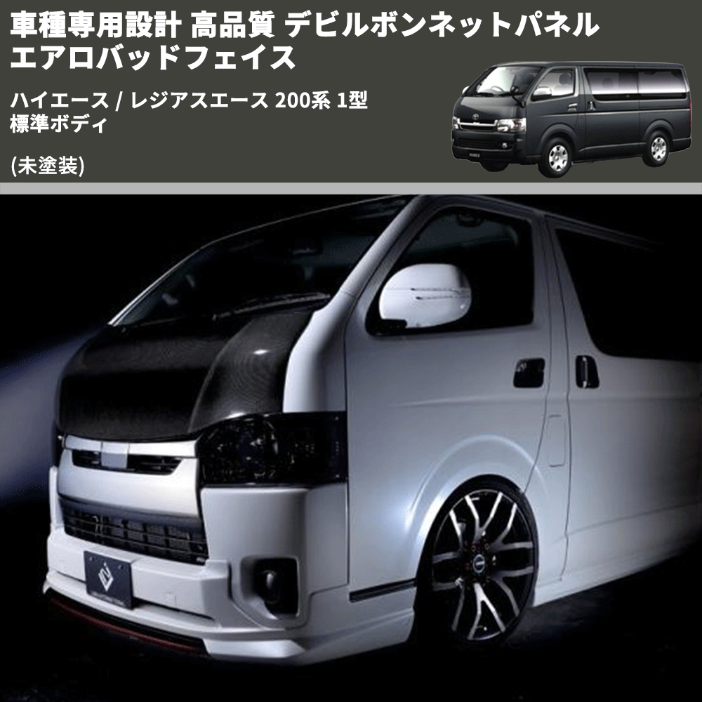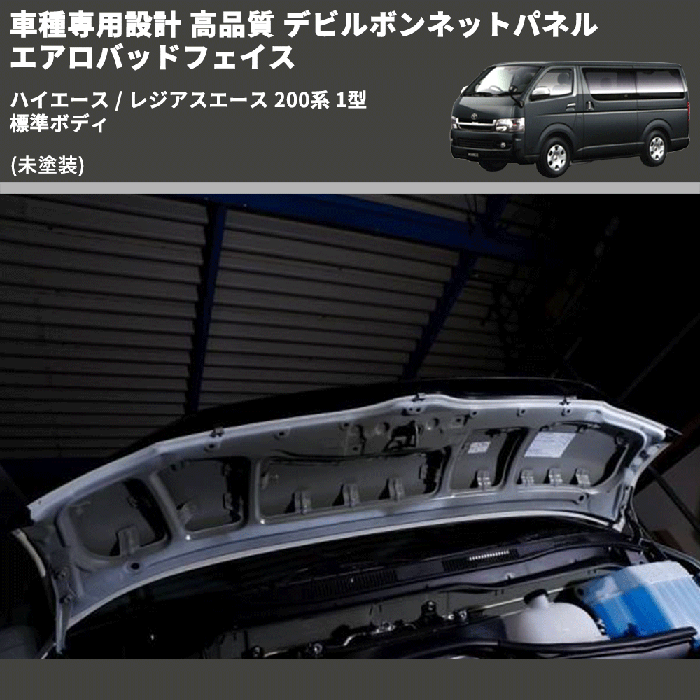 (未塗装) 車種専用設計 高品質 デビルボンネットパネル エアロバッドフェイス ハイエース / レジアスエース 200系 1型 標準ボディ