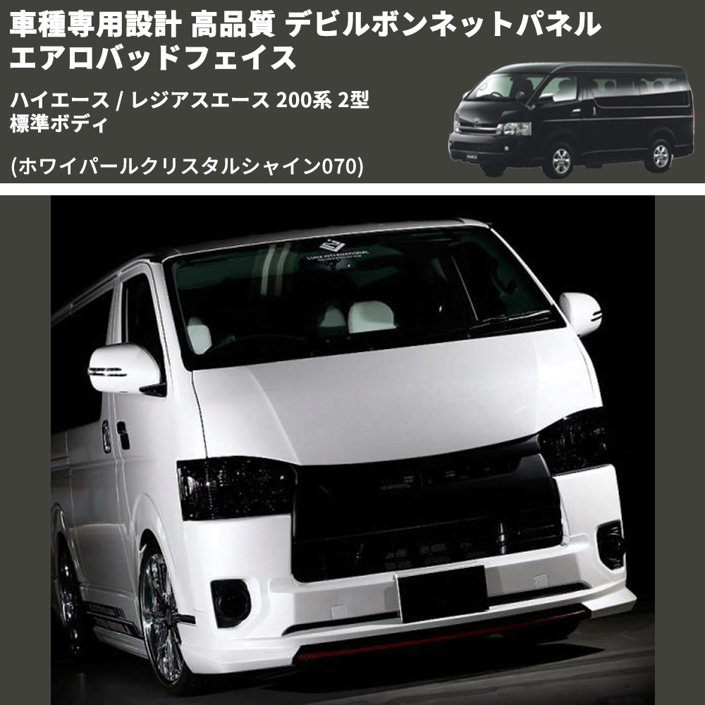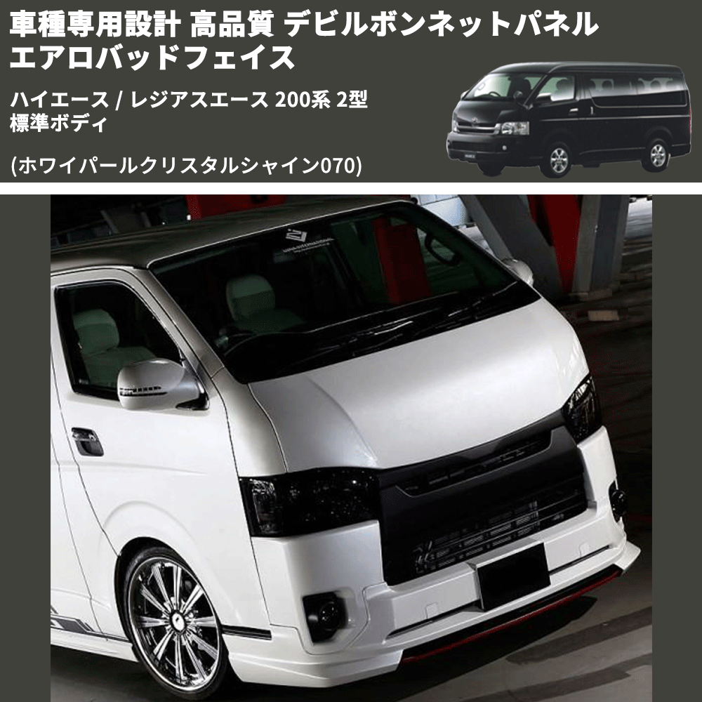 (ホワイパールクリスタルシャイン070) 車種専用設計 高品質 デビルボンネットパネル エアロバッドフェイス ハイエース / レジアスエース 200系 2型 標準ボディ